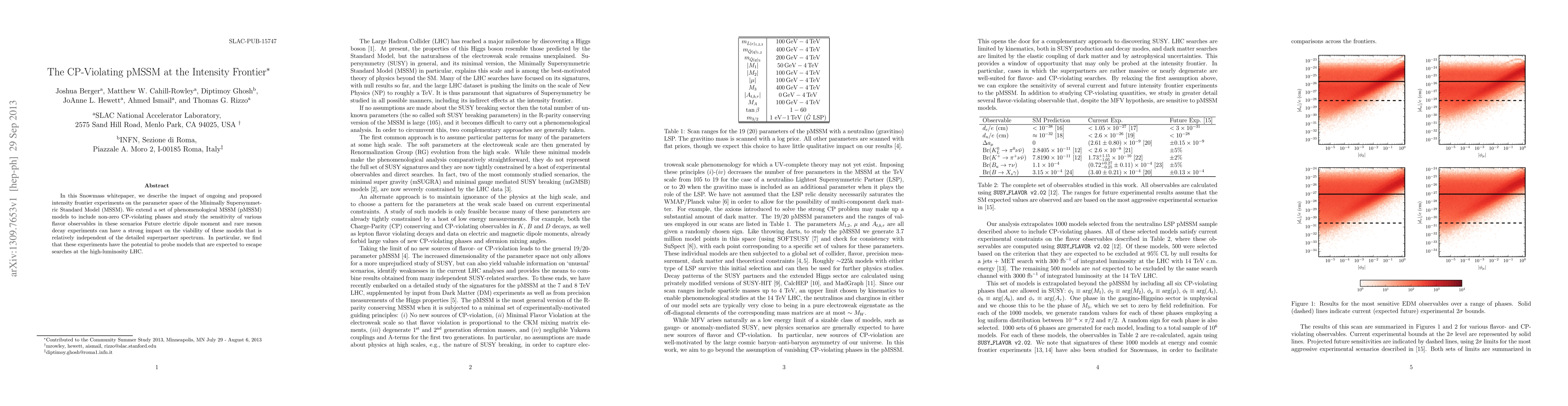 This paper explores the effects of CP-violating phases in the CP-violating pMSSM at the Intensity Frontier, assessing how future experiments can significantly influence the viability of these models, independent of LHC results, by probing scenarios that may evade high-luminosity LHC searches.