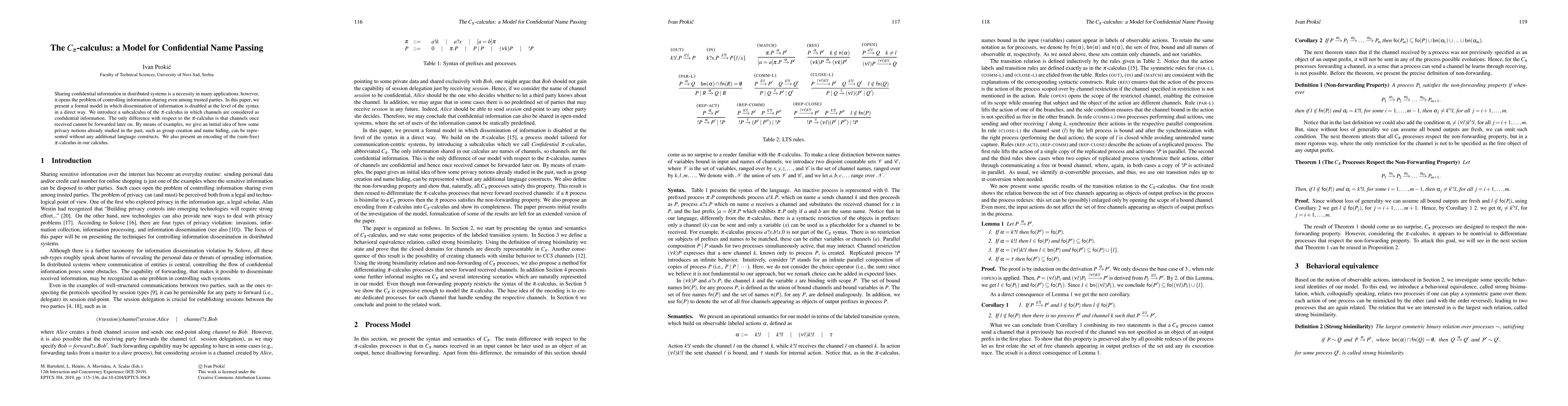 Sharing confidential information in distributed systems is a necessity in many applications, however, it opens the problem of controlling information sharing even among trusted parties. In this paper, we present a formal model in which dissemination of information is disabled at the level of the syntax in a direct way. We introduce a subcalculus of the pi-calculus in which channels are considered as confidential information. The only difference with respect to the pi-calculus is that channels once received cannot be forwarded later on. By means of examples, we give an initial idea of how some privacy notions already studied in the past, such as group creation and name hiding, can be represented without any additional language constructs. We also present an encoding of the (sum-free) pi-calculus in our calculus.