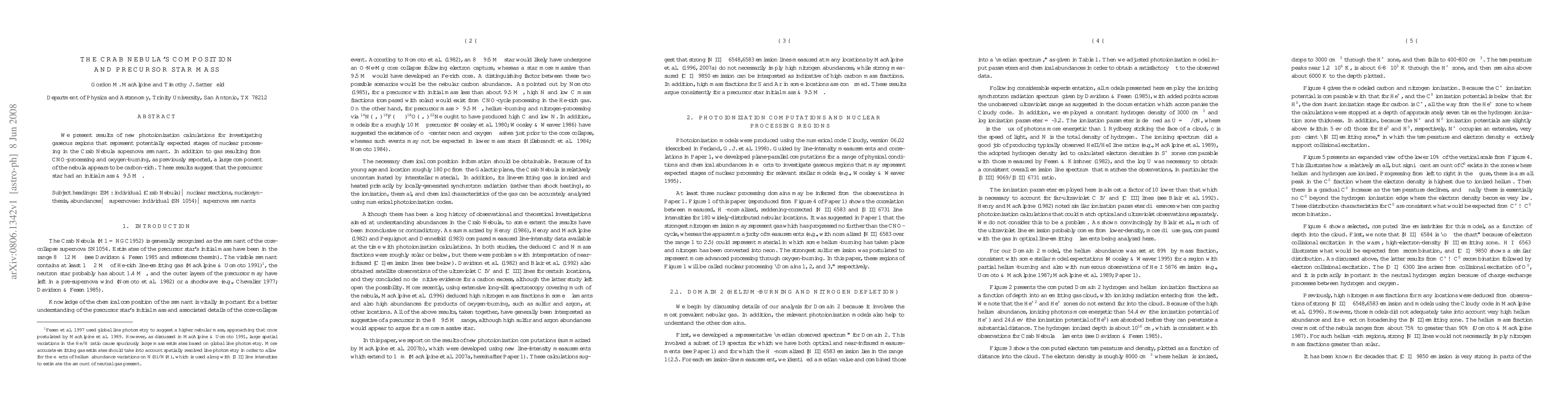 Researchers found a large component of carbon-rich gas in the Crab Nebula, suggesting a precursor star with an initial mass of 9.5 solar masses or more.