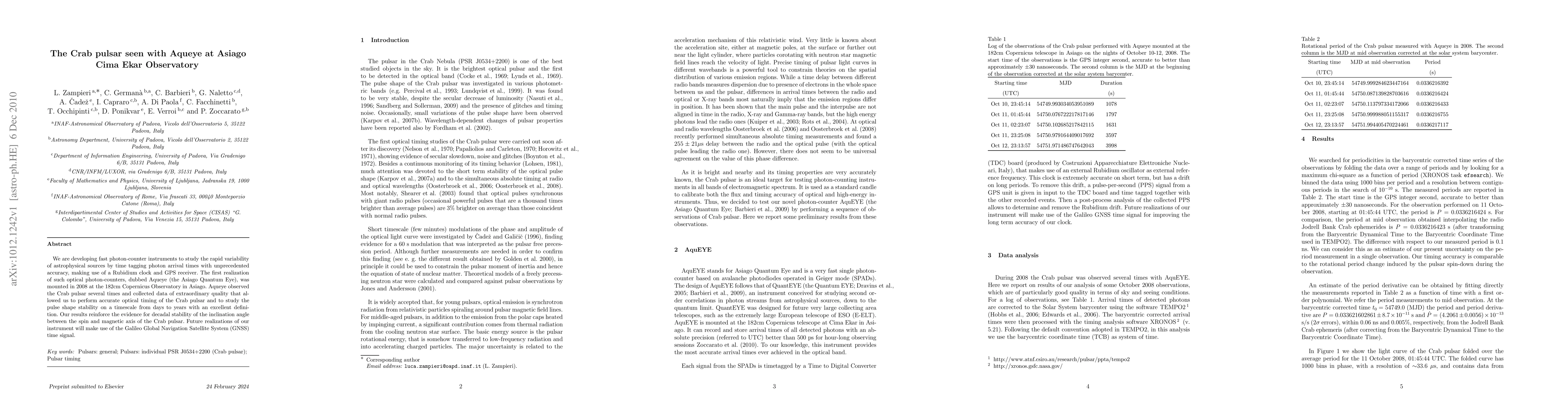 The research utilized Aqueye, a photon-counter instrument with a Rubidium clock and GPS receiver, to study the Crab pulsar's rapid variability by accurately time-tagging photon arrival times. Future versions will use the Galileo GNSS time signal for improved long-term accuracy.