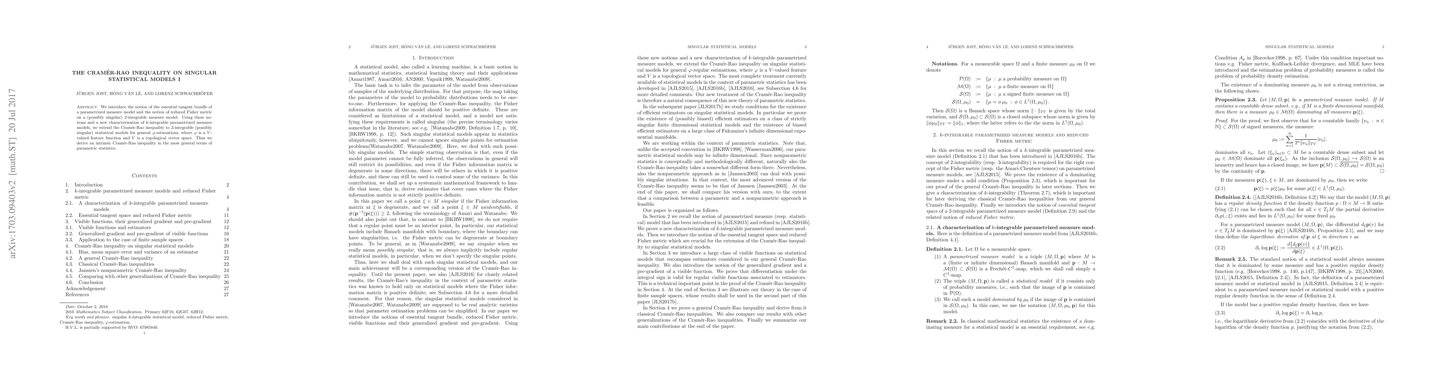 This paper extends the Cramér-Rao inequality to 2-integrable, possibly singular statistical models by introducing the essential tangent bundle and reduced Fisher metric. It provides a general intrinsic Cramér-Rao inequality for $\varphi$-estimations in parametric statistics.
