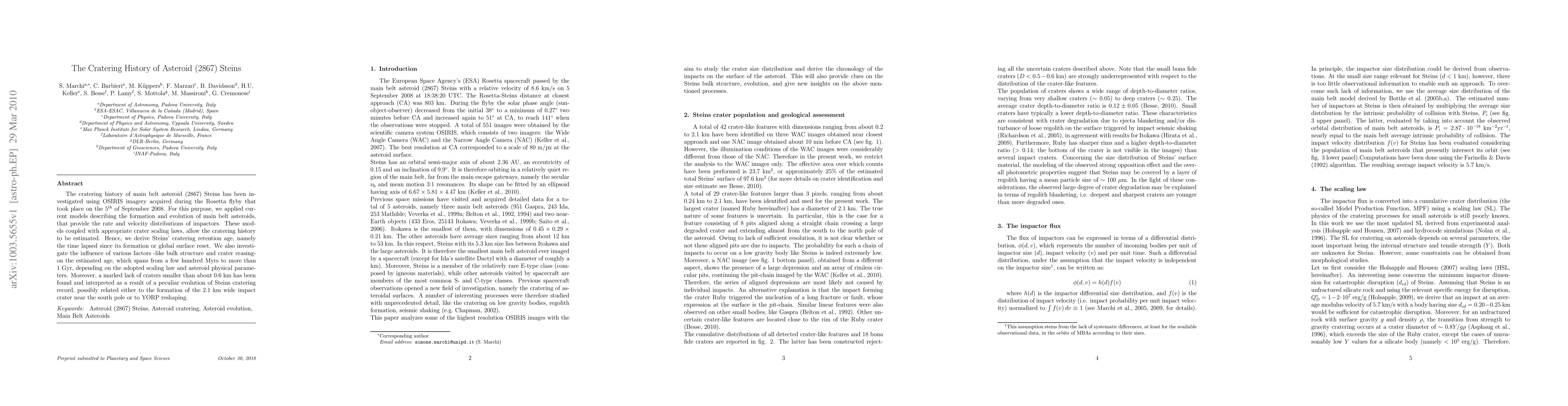 This study uses OSIRIS imagery from the 2008 Rosetta flyby to investigate the cratering history of asteroid (2867) Steins, estimating its retention age and exploring factors influencing this age. The analysis reveals a notable absence of small craters, suggesting a unique evolutionary history potentially linked to a large impact crater or YORP effects.