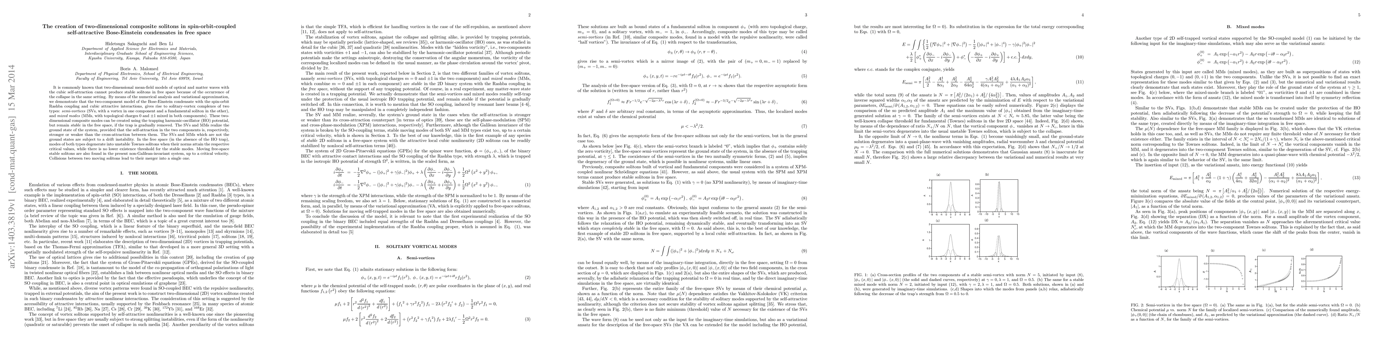 It is commonly known that two-dimensional mean-field models of optical and matter waves with the cubic self-attraction cannot produce stable solitons in free space because of the occurrence of the collapse in the same setting. By means of the numerical analysis and variational approximation, we demonstrate that the two-component model of the Bose-Einstein condensate, with the spin-orbit Rashba coupling and cubic attractive interactions, gives rise to solitary-vortex complexes of two types: semi-vortices (SVs, with a vortex in one component and a fundamental soliton in the other), and mixed modes (MMs, with topological charges 0 and +1/-1 mixed in both components). These two- dimensional composite modes can be created using the trapping harmonic-oscillator (HO) potential, but remain stable in the free space, if the trap is gradually removed. The SVs and MMs realize the ground state of the system, provided that the self-attraction in the two components is, respectively, stronger or weaker than the cross-attraction between them. The SVs and MMs which are not the ground state are subject to a drift instability. In the free space (in the absence of the HO trap), modes of both types degenerate into unstable Townes solitons when their norms attain the respective critical values, while there is no lower existence threshold for the stable modes. Moving free-space stable solitons are also found in the present non-Galilean-invariant system, up to a critical velocity. Collisions between two moving solitons lead to their merger into a single one.