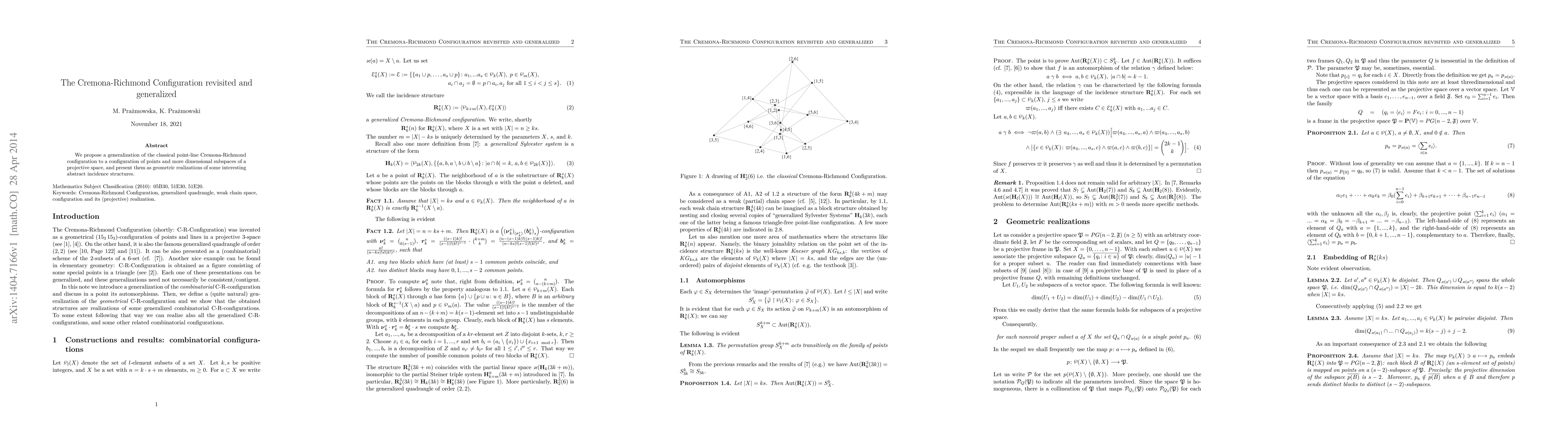 We propose a generalization of the classical point-line Cremona-Richmond configuration to a configuration of points and more dimensional subspaces of a projective space, and present them as geometric realizations of some interesting abstract incidence structures.