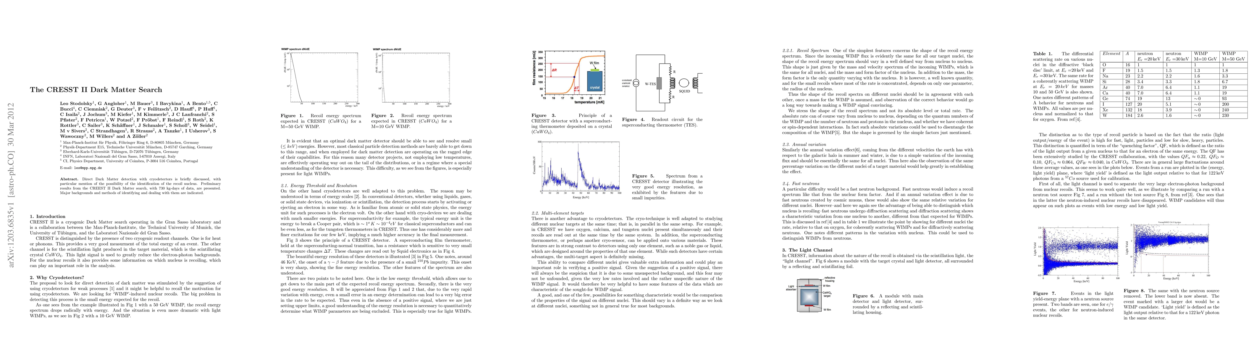 Direct Dark Matter detection with cryodetectors is briefly discussed, with particular mention of the possibility of the identification of the recoil nucleus. Preliminary results from the CREEST II Dark Matter search, with 730 kg-days of data, are presented. Major backgrounds and methods of identifying and dealing with them are indicated.