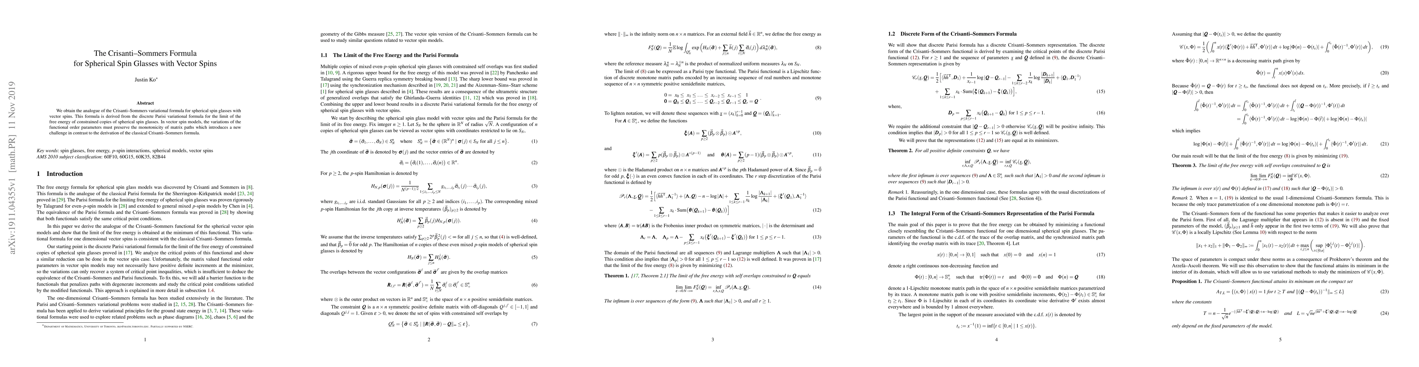 The paper derives a Crisanti-Sommers variational formula for spherical spin glasses with vector spins, extending the classical formula by preserving the monotonicity of matrix paths in vector spin models. This new formula is derived from the discrete Parisi variational formula for the free energy limit of constrained spherical spin glasses.
