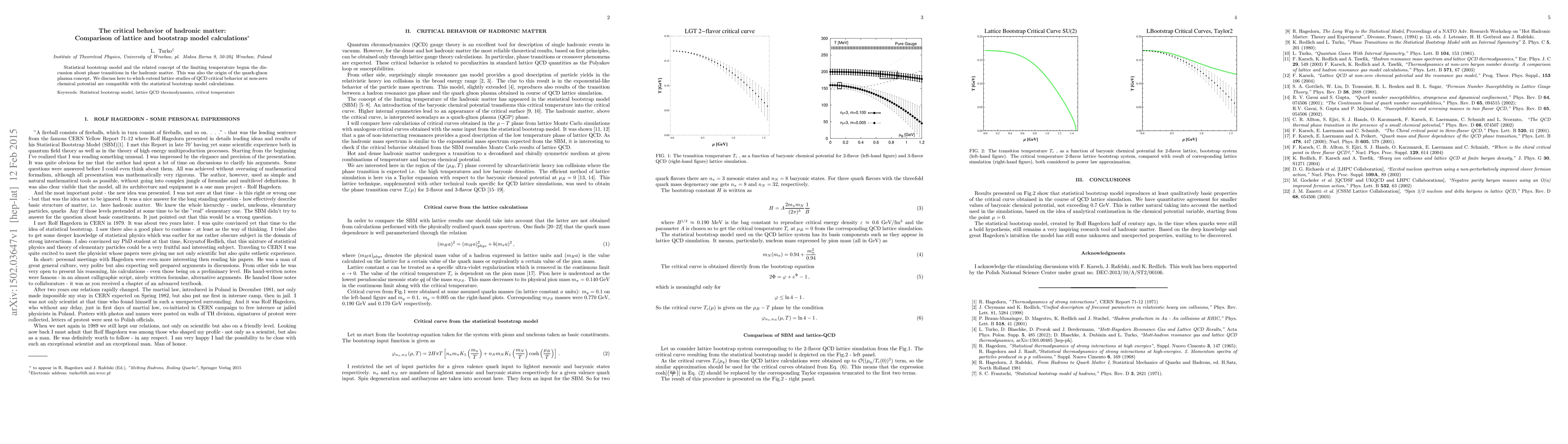 Summary: This paper compares lattice QCD calculations and statistical bootstrap model predictions to assess the compatibility of their findings regarding the critical behavior of hadronic matter, particularly focusing on phase transitions and the quark-gluon plasma concept at non-zero chemical potential.