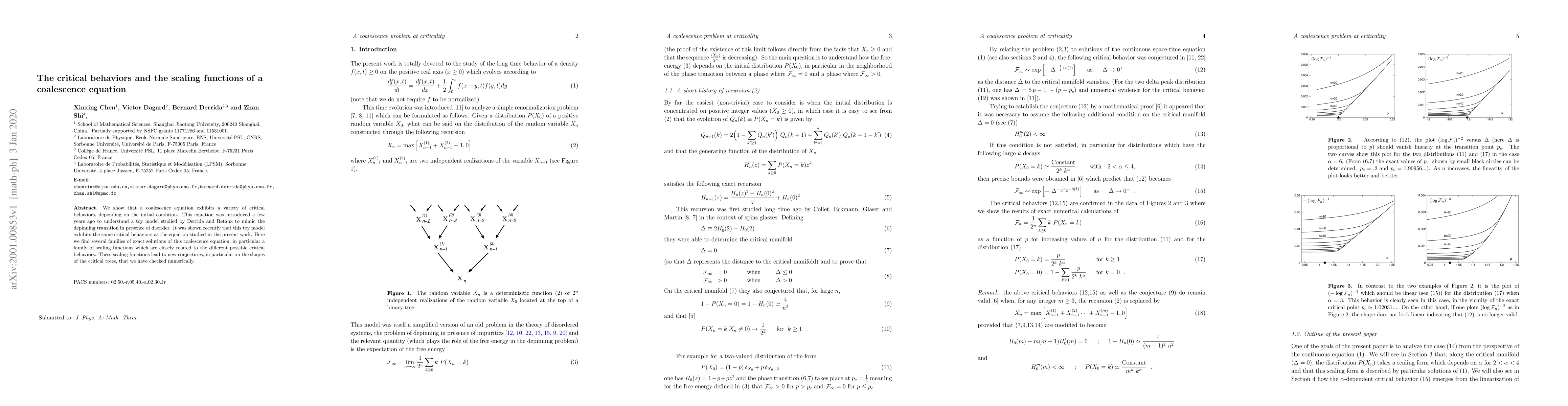 We show that a coalescence equation exhibits a variety of critical behaviors, depending on the initial condition. This equation was introduced a few years ago to understand a toy model {studied by Derrida and Retaux to mimic} the depinning transition in presence of disorder. It was shown recently that this toy model exhibits the same critical behaviors as the equation studied in the present work. Here we find several families of exact solutions of this coalescence equation, in particular a family of scaling functions which are closely related to the different possible critical behaviors. These scaling functions lead to new conjectures, in particular on the shapes of the critical trees, that we have checked numerically.