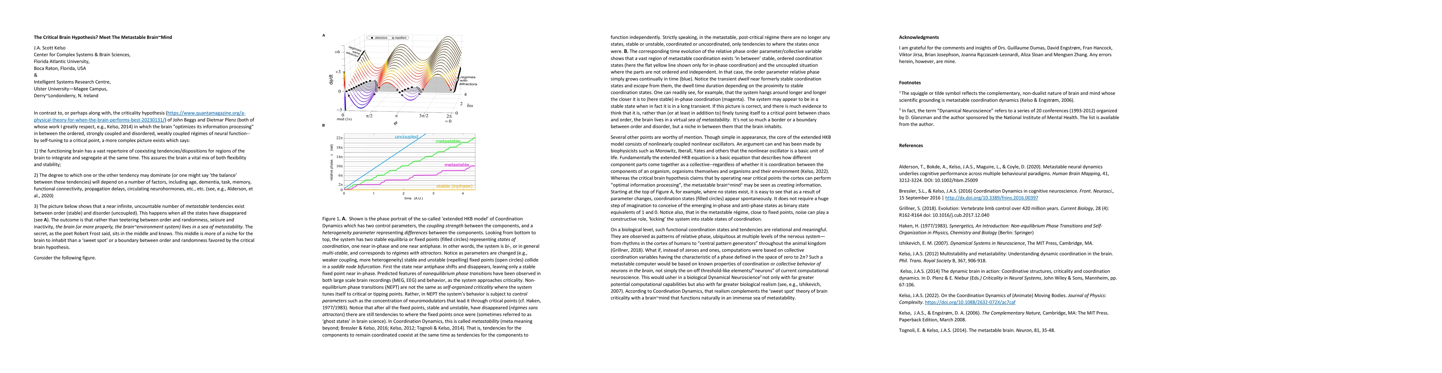 In contrast to the critical brain hypothesis in which the brain tunes itself to a critical point between $states$ of chaos and order, analysis of Coordination Dynamics suggests that a vast repertoire of $coexisting$ $tendencies$ exists for regions of the brain to integrate and segregate at the same time. Rather than teetering between order and randomness, the brain~mind lives in an immense sea of metastability where it can create functional information.