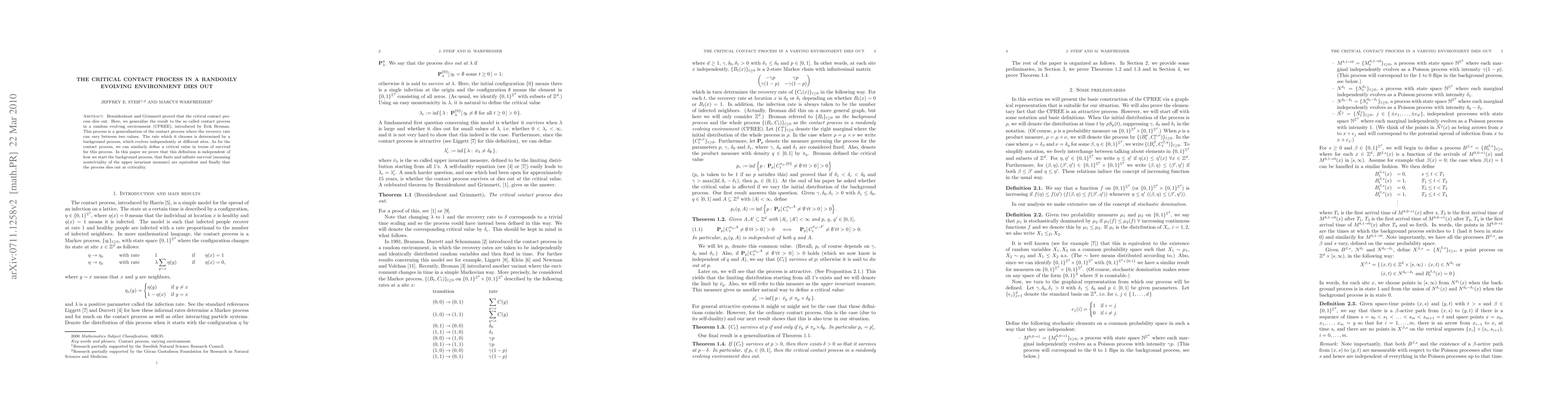This paper generalizes the critical contact process to a random evolving environment where the recovery rate varies based on an independent background process. It proves that the process dies out at the critical value, regardless of the initial state of the background process.