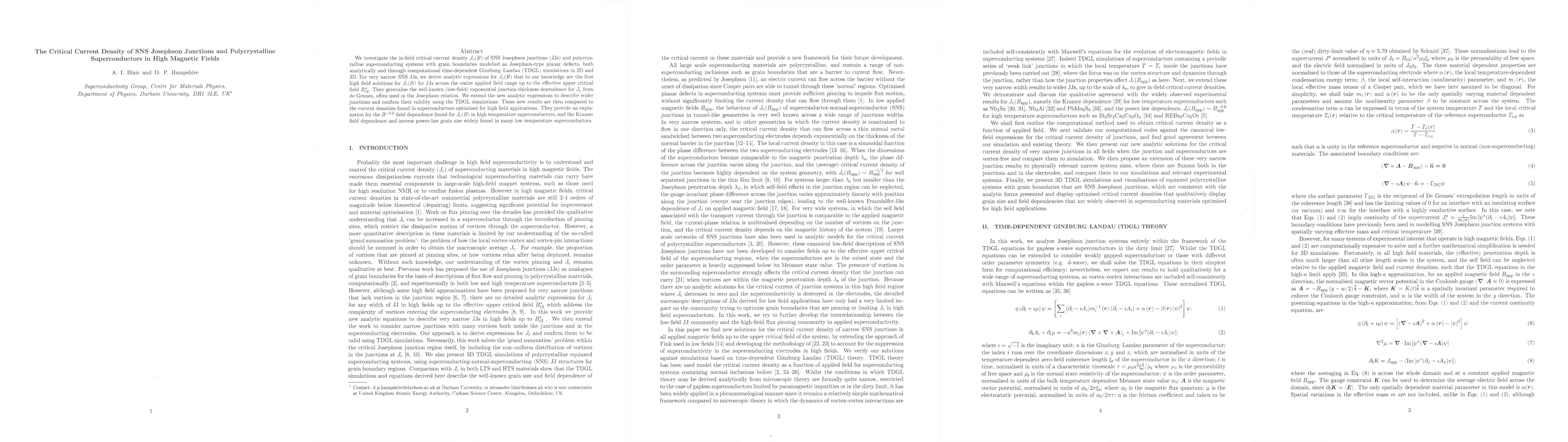 This paper investigates the critical current density Jc(B) of SNS Josephson junctions and polycrystalline superconductors under high magnetic fields, deriving new analytical expressions and validating them with computational simulations. The findings explain observed field dependencies in both high and low temperature superconductors.