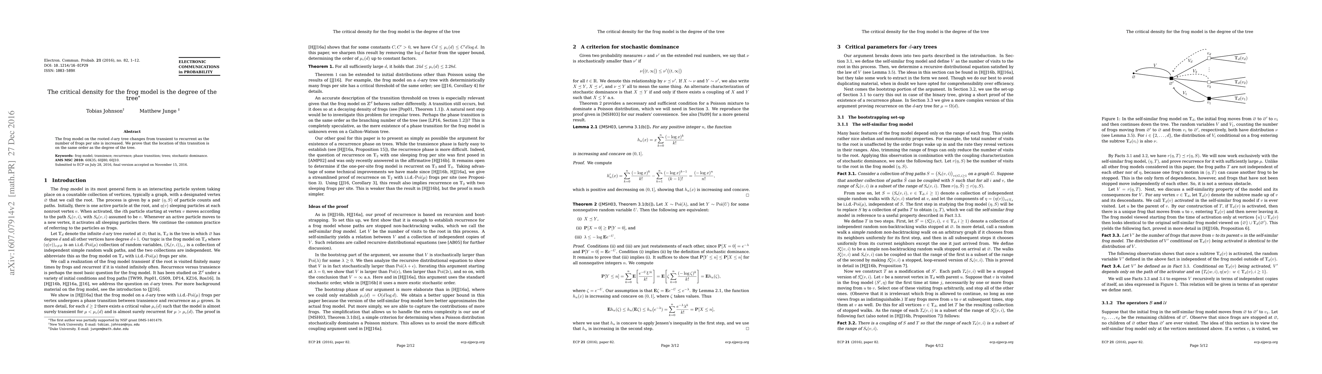 The frog model on the rooted d-ary tree changes from transient to recurrent as the number of frogs per site is increased. We prove that the location of this transition is on the same order as the degree of the tree.