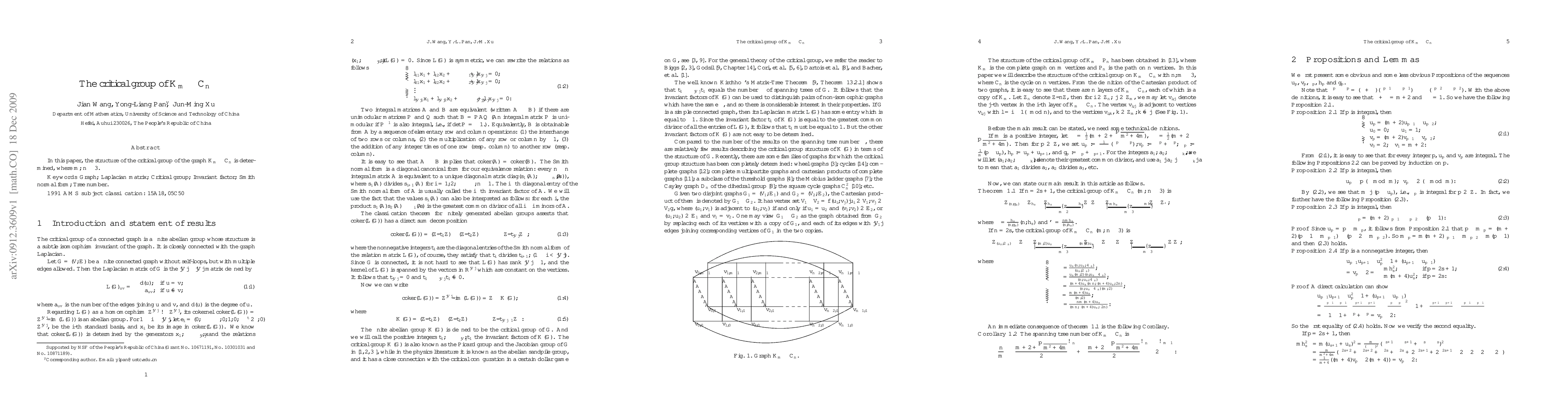 In this paper, the structure of the critical group of the graph $K_m\times C_n$ is determined, where $m, n\ge 3$.