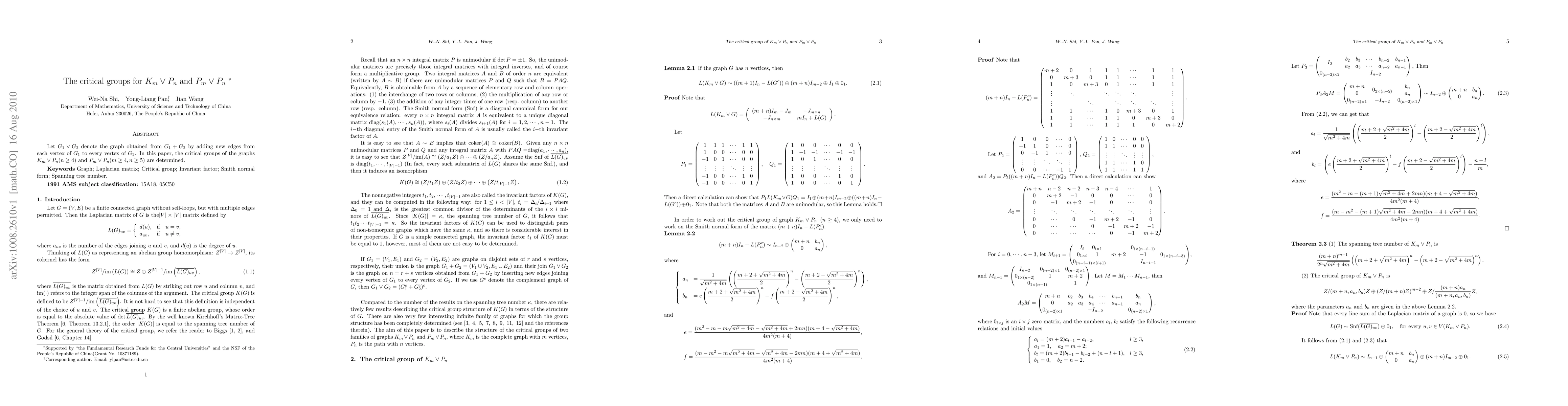 Let $G_1\sq G_2$ denote the graph obtained from $G_1+G_2$ by adding new edges from each vertex of $G_1$ to every vertex of $G_2$. In this paper, the critical groups of the graphs $K_m\sq P_n$$(n\geq4)$ and $P_m\sq P_n$$(m\geq4,n\geq5)$ are determined.