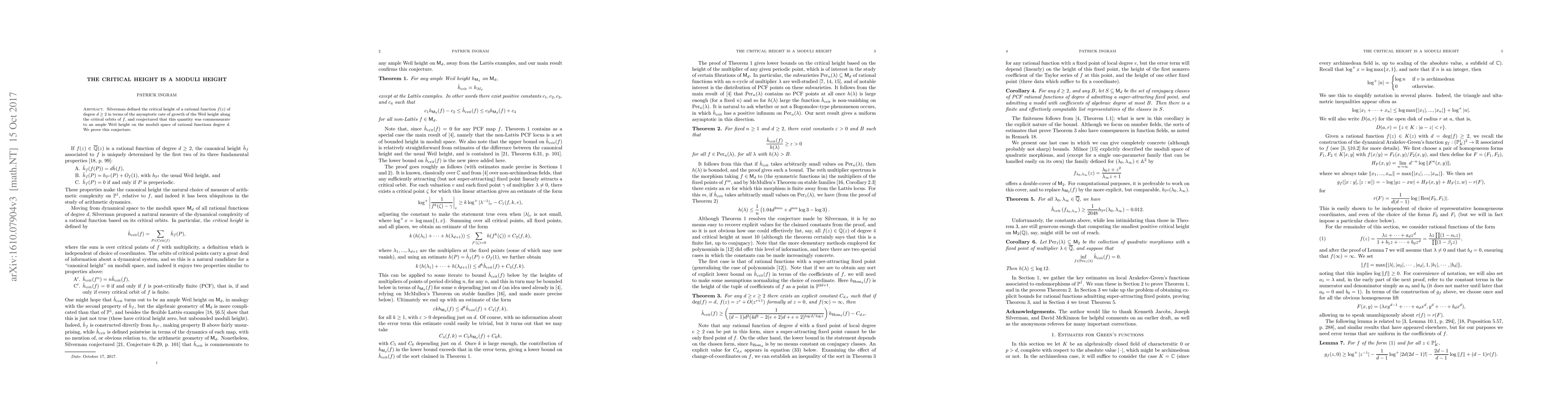 The critical height of a rational function (with algebraic coefficients) is a natural measure of dynamical complexity, essentially an adelic analogue of the Lyapunov exponent. Coordinate-free, it is well-defined on moduli space, but bears no obvious relation to the arithmetic geometry of that space as a variety. At a conference in 2010, Silverman conjectured that this disconnect is superficial, and that in fact the critical height should be at least commensurate to any ample Weil height on the moduli space, except on the Lattes locus (where that has no hope of being true). Here, we prove that conjecture.