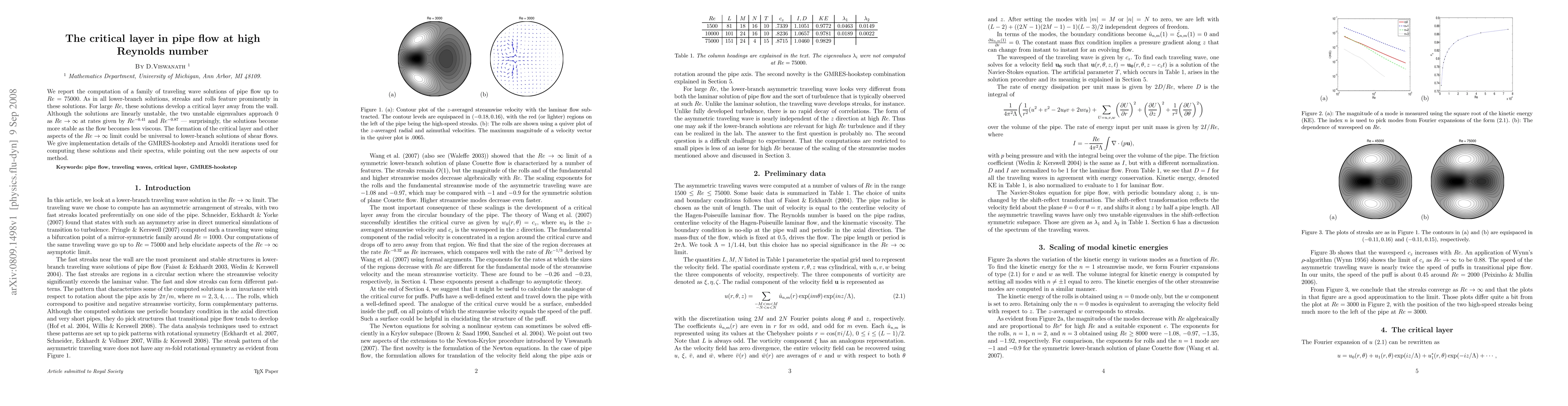 We report the computation of a family of traveling wave solutions of pipe flow up to $Re=75000$. As in all lower-branch solutions, streaks and rolls feature prominently in these solutions. For large $Re$, these solutions develop a critical layer away from the wall. Although the solutions are linearly unstable, the two unstable eigenvalues approach 0 as $Re\to\infty$ at rates given by $Re^{-0.41}$ and $Re^{-0.87}$ -- surprisingly, the solutions become more stable as the flow becomes less viscous. The formation of the critical layer and other aspects of the $Re\to\infty$ limit could be universal to lower-branch solutions of shear flows. We give implementation details of the GMRES-hookstep and Arnoldi iterations used for computing these solutions and their spectra, while pointing out the new aspects of our method.