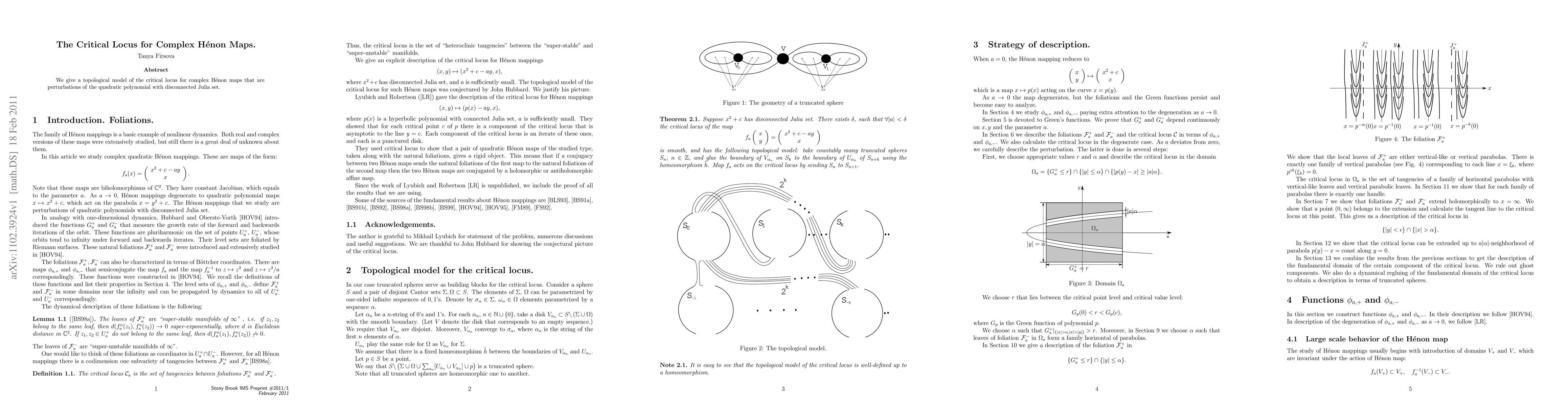 The research employs a topological model to describe the critical locus for complex Hénon maps, specifically for perturbations of the quadratic polynomial with a disconnected Julia set.