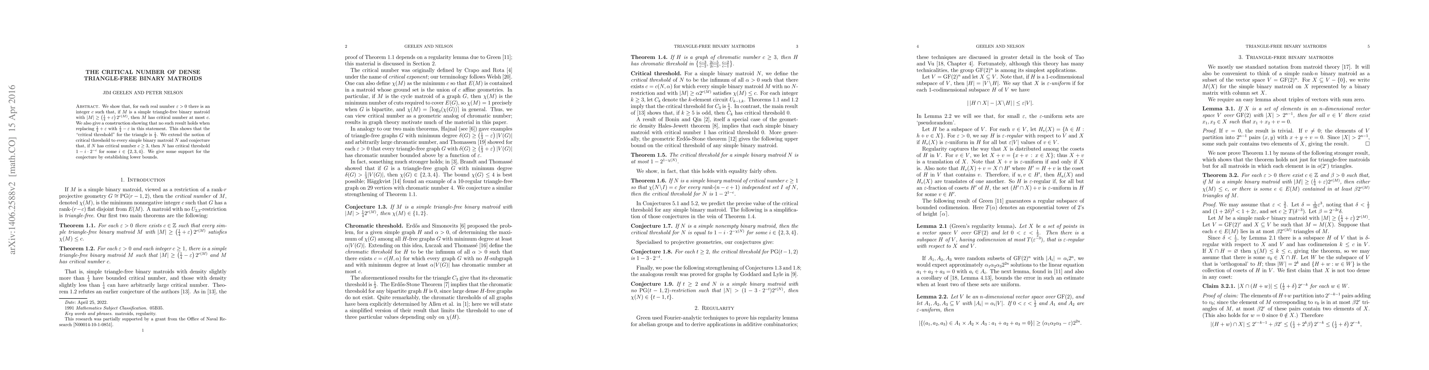 We show that, for each real number $\epsilon > 0$ there is an integer $c$ such that, if $M$ is a simple triangle-free binary matroid with $|M| \ge (\tfrac{1}{4} + \epsilon) 2^{r(M)}$, then $M$ has critical number at most $c$. We also give a construction showing that no such result holds for any real number less than $\tfrac{1}{4}$. This shows that the "critical threshold" for the triangle is $\tfrac 1 4$. We extend the notion of critical threshold to every simple binary matroid $N$ and conjecture that, if $N$ has critical number $c\ge 3$, then $N$ has critical threshold $1-i\cdot 2^{-c}$ for some $i\in \{2,3,4\}$. We give some support for the conjecture by establishing lower bounds.