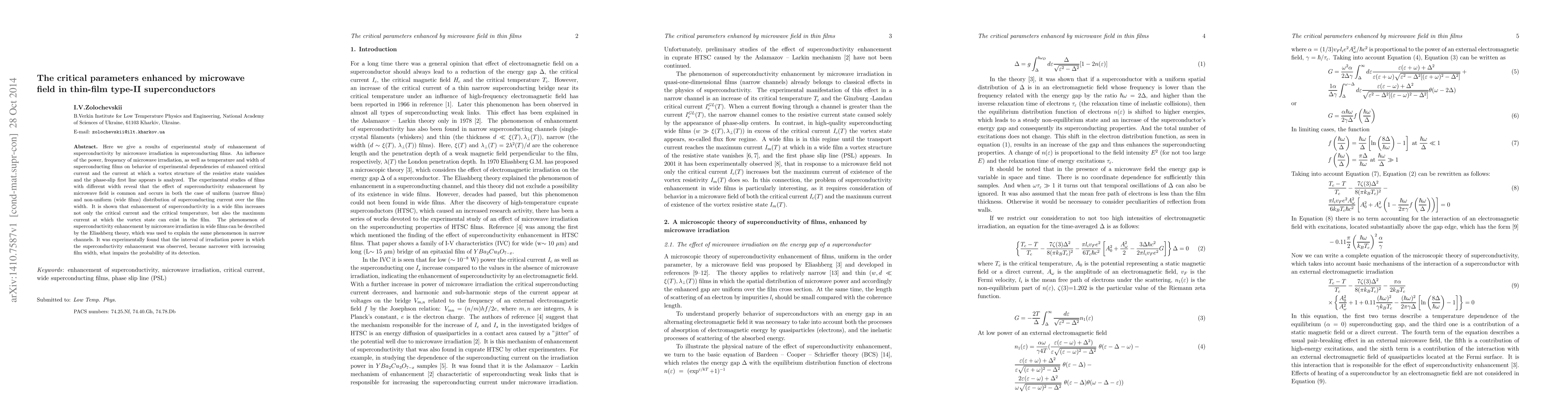Researchers found that microwave irradiation enhances superconductivity in thin-film type-II superconductors, with wider films exhibiting increased critical current and temperature as well as a broader range of possible vortex states.