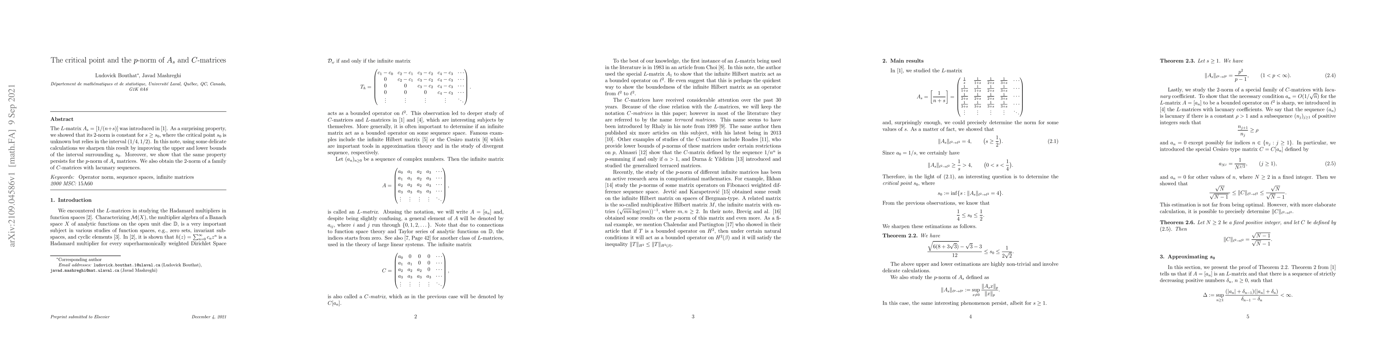 This paper investigates the $L$-matrix $A_s$ and demonstrates that its 2-norm remains constant for $s \geq s_0$, where $s_0$ lies in the interval $(1/4, 1/2)$. The authors refine the bounds of this interval and extend the findings to the $p$-norm of $A_s$ matrices, along with determining the 2-norm for a family of $C$-matrices with lacunary sequences.