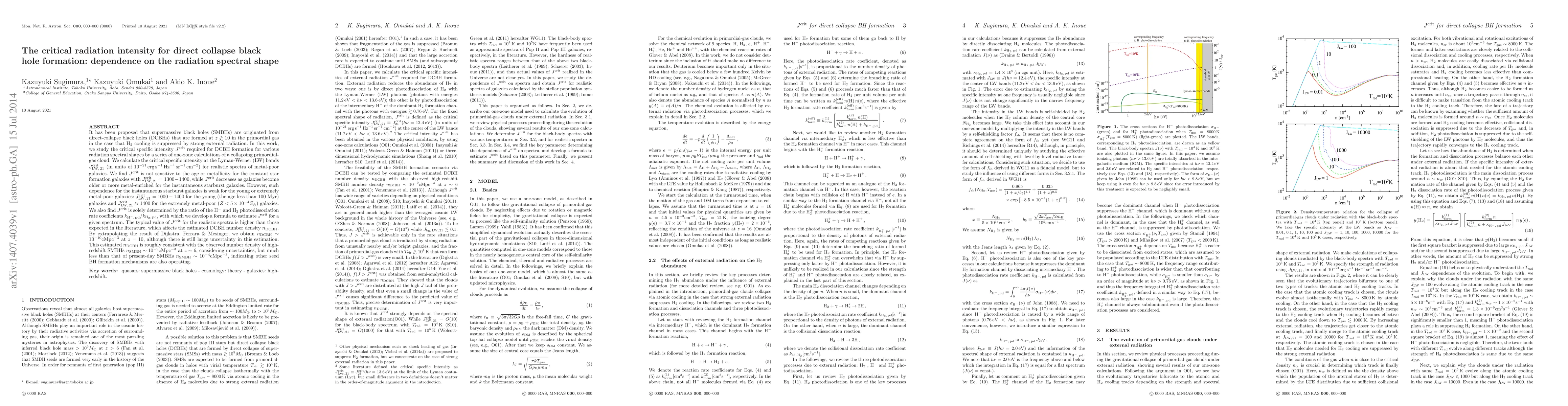 It has been proposed that supermassive black holes (SMBHs) are originated from direct-collapse black holes (DCBHs) that are formed at z gtrsim 10 in the primordial gas in the case that H2 cooling is suppressed by strong external radiation. In this work, we study the critical specific intensity J^crit required for DCBH formation for various radiation spectral shapes by a series of one-zone calculations of a collapsing primordial- gas cloud. We calculate the critical specific intensity at the Lyman-Werner (LW) bands J^crit_LW,21 (in units of 10^-21 erg s^-1 Hz^-1 sr^-1 cm^-2) for realistic spectra of metal-poor galaxies. We find J^crit is not sensitive to the age or metallicity for the constant star formation galaxies with J^crit_LW,21 = 1300-1400, while J^crit decreases as galaxies become older or more metal-enriched for the instantaneous starburst galaxies. However, such dependence for the instantaneous starburst galaxies is weak for the young or extremely metal-poor galaxies: J^crit_LW,21 = 1000-1400 for the young galaxies and J^crit_LW,21 approx 1400 for the extremely metal-poor galaxies. The typical value of J^crit for the realistic spectra is higher than those expected in the literature, which affects the estimated DCBH number density n_DCBH. By extrapolating the result of Dijkstra, Ferrara and Mesinger, we obtain n_DCBH sim 10^-10 cMpc^-3 at z = 10, although there is still large uncertainty in this estimation.