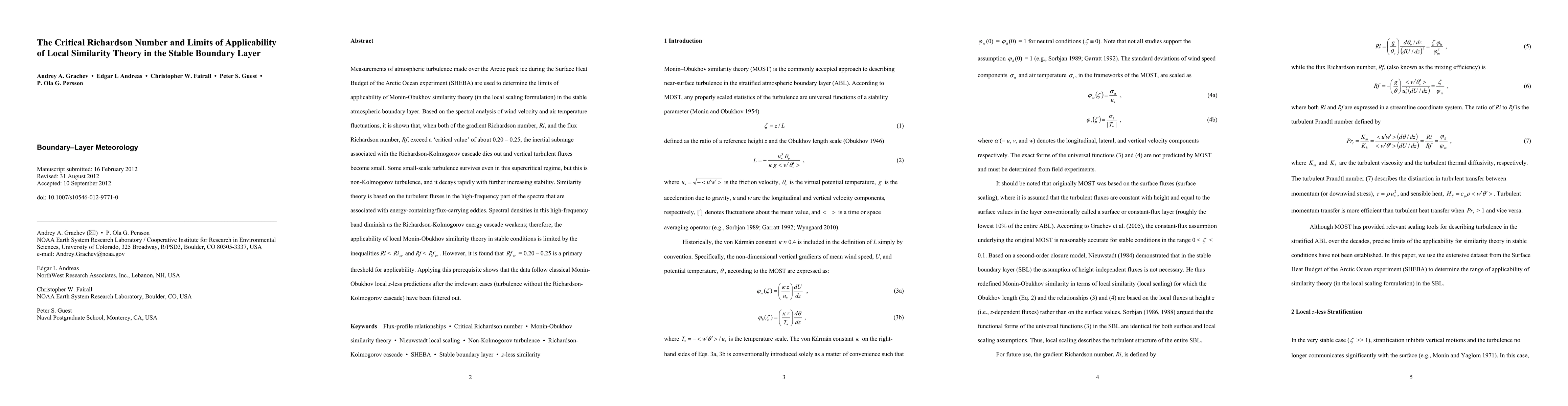 This paper investigates the limits of Monin-Obukhov similarity theory in the stable atmospheric boundary layer using Arctic turbulence data from the SHEBA experiment. It finds that when the gradient and flux Richardson numbers exceed a critical value of 0.20-0.25, the inertial subrange diminishes, limiting the theory's applicability.