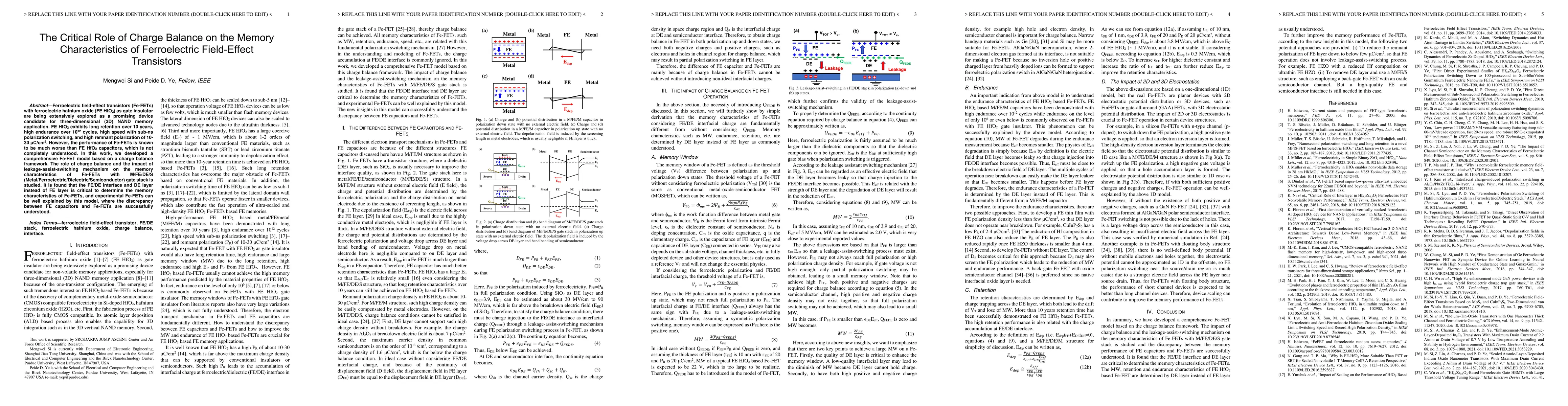 This paper explores the memory performance of ferroelectric field-effect transistors (Fe-FETs) using a charge balance model, revealing that the FE/DE interface and DE layer, rather than the FE layer, critically determine Fe-FET memory characteristics. The study explains the performance discrepancies between Fe-FETs and ferroelectric capacitors.