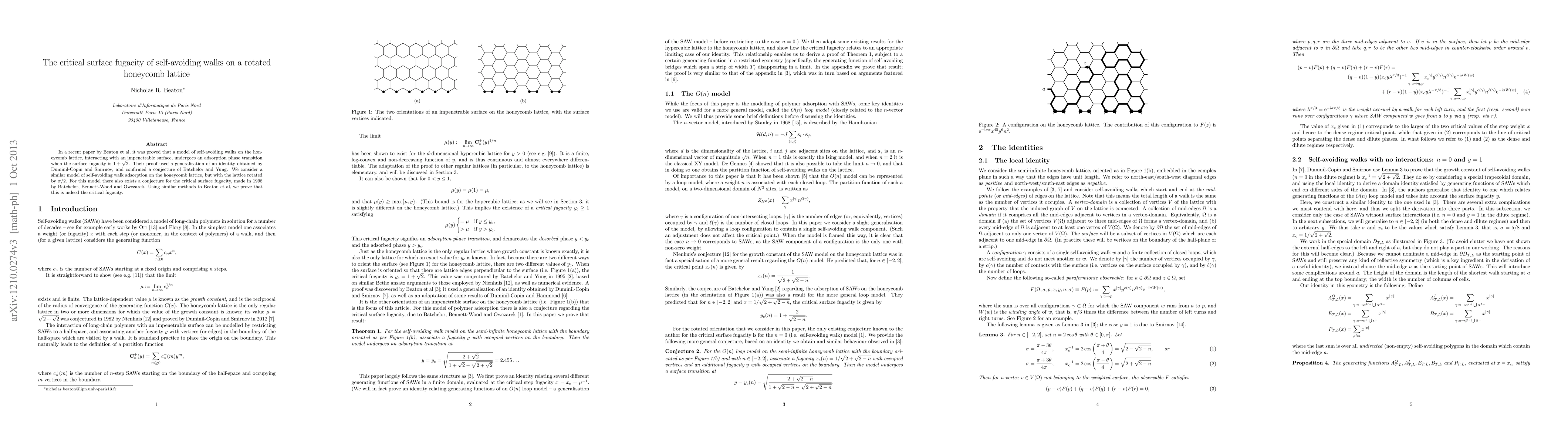 This paper proves that a rotated honeycomb lattice model of self-avoiding walks interacting with an impenetrable surface undergoes an adsorption phase transition at a surface fugacity of $1+\sqrt{2}$, confirming the 1998 conjecture by Batchelor, Bennett-Wood, and Owczarek using methods similar to those employed by Beaton et al.