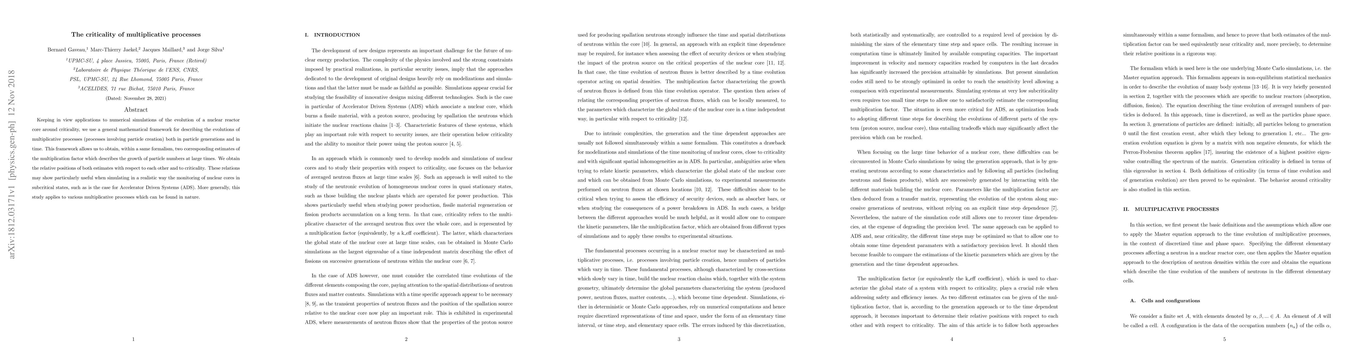 This study develops a mathematical framework to describe multiplicative processes in particle generation and time, providing estimates of the multiplication factor for simulating nuclear reactor cores in subcritical states.