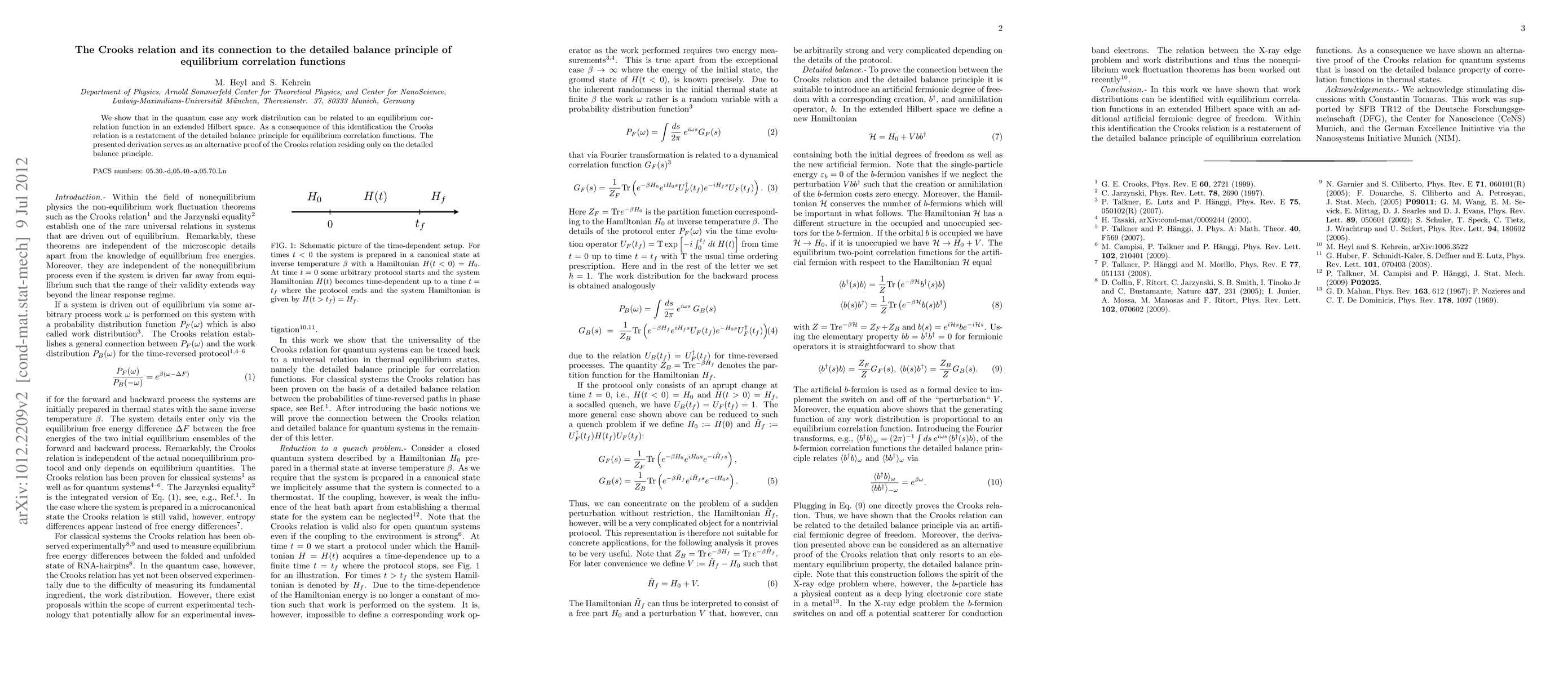 Summary: This paper establishes a connection between the Crooks relation and the detailed balance principle in quantum systems, demonstrating that any work distribution can be linked to an equilibrium correlation function, thereby providing an alternative proof of the Crooks relation based solely on the detailed balance principle.