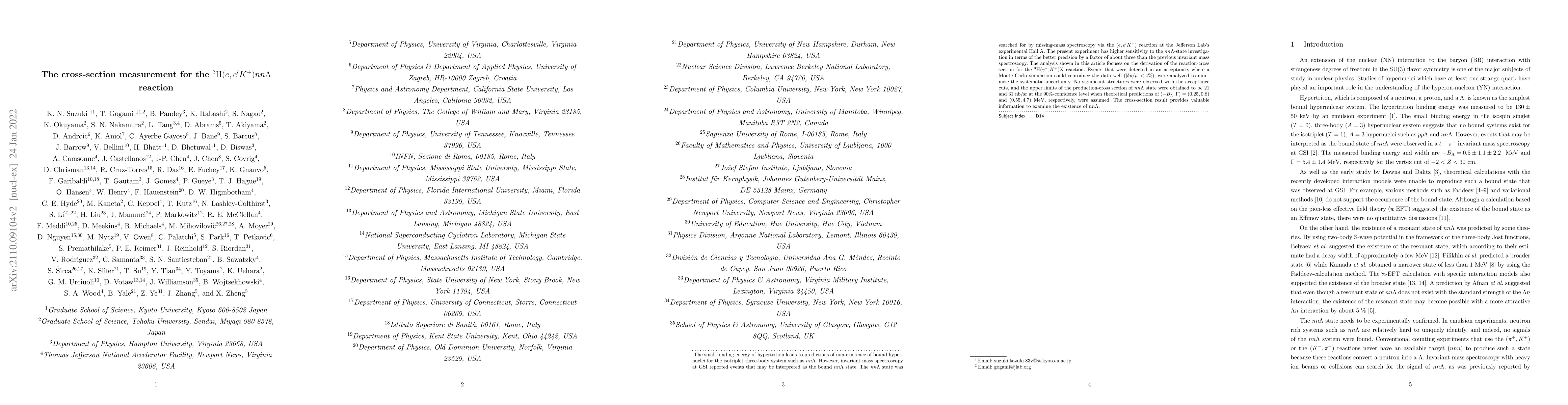 The small binding energy of the hypertrition leads to predictions of non-existence of bound hypernuclei for isotriplet three-body systems such as $nn\Lambda$. However, invariant mass spectroscopy at GSI has reported events that may be interpreted as the bound $nn\Lambda$ state. The $nn\Lambda$ state was sought by missing-mass spectroscopy via the $(e,e'K^+)$ reaction at Jefferson Lab's experimental Hall A. The present experiment has higher sensitivity to the $nn\Lambda$-state investigation in terms of better precision by a factor of about three. The analysis shown in this article focuses on the derivation of the reaction cross-section for the $^3{\rm{H}}(\gamma^{*},K^+)\textrm{X}$ reaction. Events that were detected in an acceptance, where a Monte Carlo simulation could reproduce the data well ($|\delta p/p| < 4\%$), were analyzed to minimize the systematic uncertainty. No significant structures were observed with the acceptance cuts, and the upper limits of the production cross-section of the $nn\Lambda$ state were obtained to be $21$ and $31~\rm{nb/sr}$ at the $90\%$ confidence level when theoretical predictions of $(-B_{\Lambda}, \Gamma) = (0.25,0.8)$ and $(0.55, 4.7)$ MeV, respectively, were assumed. The cross-section result provides valuable information for examining the existence of $nn\Lambda$.