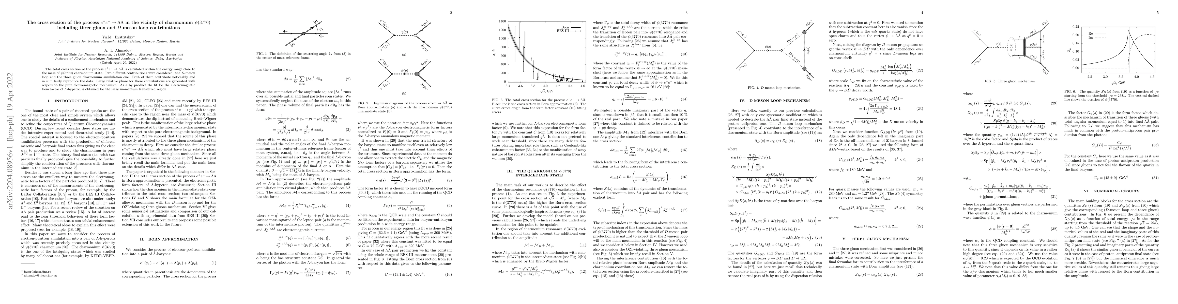 The total cross section of the process $e^+e^- \to \Lambda\bar{\Lambda}$ is calculated within the energy range close to the mass of $\psi(3770)$ charmonium state. Two different contributions were considered: the $D$-meson loop and the three gluon charmonium annihilation one. Both of them contribute noticeably and in sum fairly reproduce the data. Large relative phase for these contributions are generated with respect to the pure electromagnetic mechanism. As a by product the fit for the electromagnetic form factor of $\Lambda$-hyperon is obtained for the large momentum transferred region.