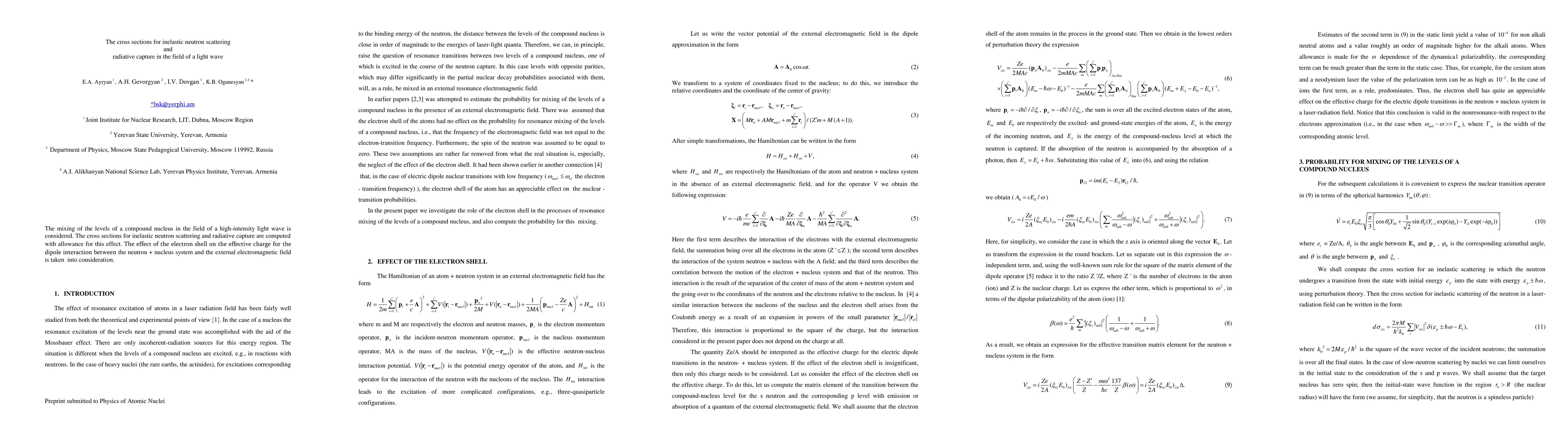 This paper investigates the impact of high-intensity light waves on the mixing of compound nucleus levels, computing the cross sections for inelastic neutron scattering and radiative capture, while considering the influence of the electron shell on the effective charge in the neutron-nucleus dipole interaction.