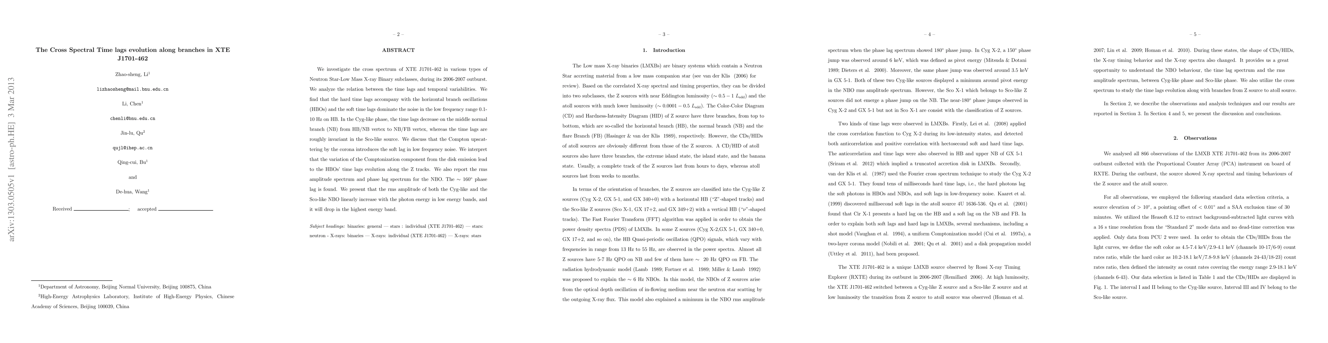 We investigate the cross spectrum of XTE J1701-462 in various types of Neutron Star-Low Mass X-ray Binary subclasses, during its 2006-2007 outburst. We analyze the relation between the time lags and temporal variabilities. We find that the hard time lags accompany with the horizontal branch oscillations (HBOs) and the soft time lags dominate the noise in the low frequency range 0.1-10 Hz on HB. In the Cyg-like phase, the time lags decrease on the middle normal branch (NB) from HB/NB vertex to NB/FB vertex, whereas the time lags are roughly invariant in the Sco-like source. We discuss that the Compton upscattering by the corona introduces the soft lag in low frequency noise. We interpret that the variation of the Comptonization component from the disk emission lead to the HBOs' time lags evolution along the Z tracks. We also report the rms amplitude spectrum and phase lag spectrum for the NBO. The $\sim$ $160^{\circ}$ phase lag is found. We present that the rms amplitude of both the Cyg-like and the Sco-like NBO linearly increase with the photon energy in low energy bands, and it will drop in the highest energy band.