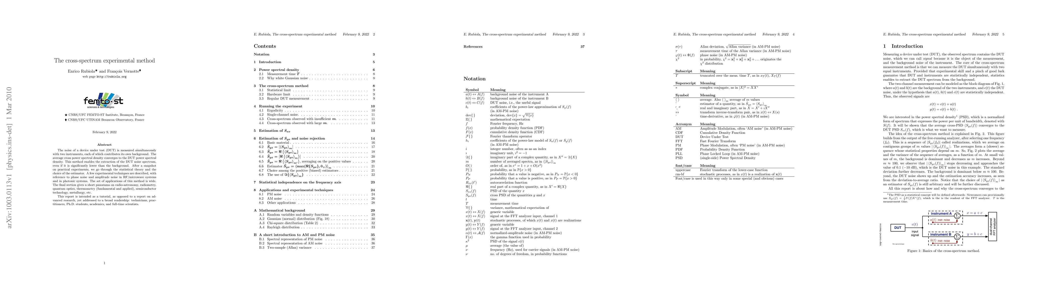 The noise of a device under test (DUT) is measured simultaneously with two instruments, each of which contributes its own background. The average cross power spectral density converges to the DUT power spectral density. This method enables the extraction of the DUT noise spectrum, even if it is significantly lower than the background. After a snapshot on practical experiments, we go through the statistical theory and the choice of the estimator. A few experimental techniques are described, with reference to phase noise and amplitude noise in RF/microwave systems and in photonic systems. The set of applications of this method is wide. The final section gives a short panorama on radioastronomy, radiometry, quantum optics, thermometry (fundamental and applied), semiconductor technology, metallurgy, etc. This report is intended as a tutorial, as opposed to a report on advanced research, yet addressed to a broad readership: technicians, practitioners, Ph.D. students, academics, and full-time scientists.