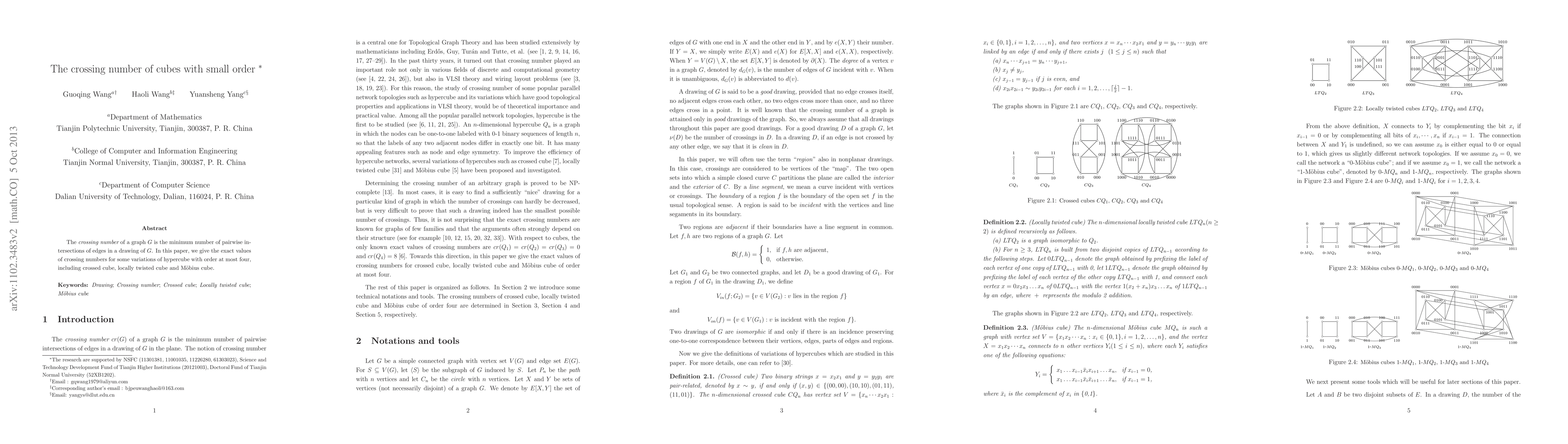 The {\it crossing number} of a graph $G$ is the minimum number of pairwise intersections of edges in a drawing of $G$. In this paper, we give the exact values of crossing numbers for some variations of hypercube with order at most four, including crossed cube, locally twisted cube and M\"{o}bius cube.