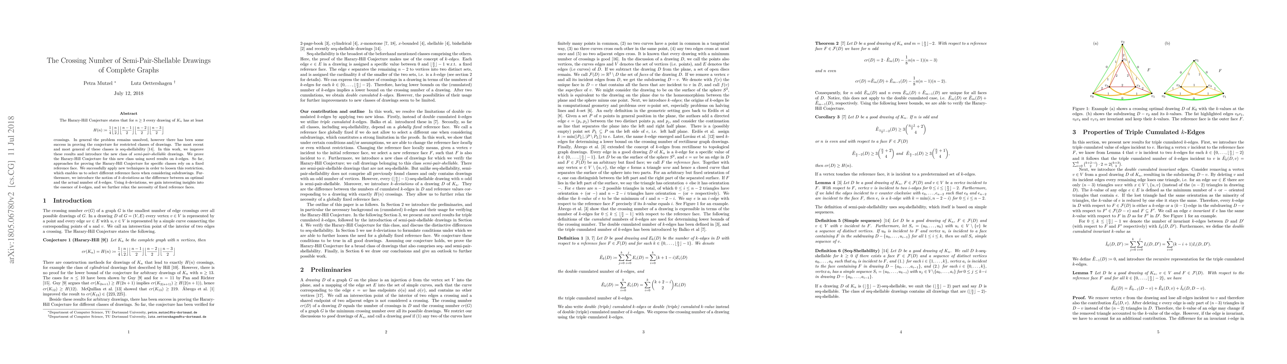 Researchers prove Harary-Hill Conjecture for semi-pair-shellable drawings of complete graphs, a generalization that allows for more flexible reference faces and deeper insights into the structure of k-edges.