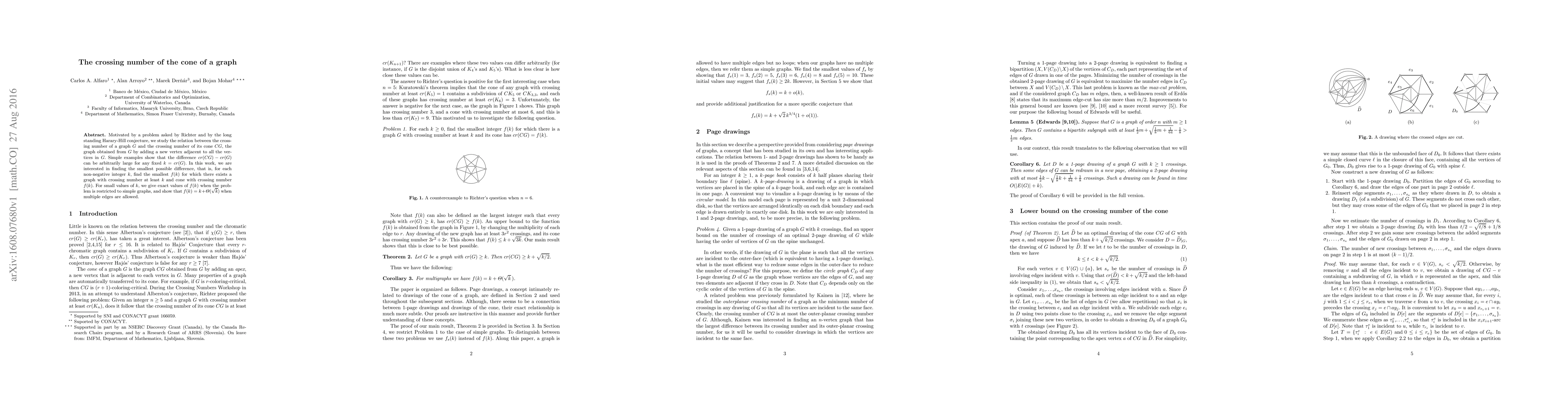 Motivated by a problem asked by Richter and by the long standing Harary-Hill conjecture, we study the relation between the crossing number of a graph $G$ and the crossing number of its cone $CG$, the graph obtained from $G$ by adding a new vertex adjacent to all the vertices in $G$. Simple examples show that the difference $cr(CG)-cr(G)$ can be arbitrarily large for any fixed $k=cr(G)$. In this work, we are interested in finding the smallest possible difference, that is, for each non-negative integer $k$, find the smallest $f(k)$ for which there exists a graph with crossing number at least $k$ and cone with crossing number $f(k)$. For small values of $k$, we give exact values of $f(k)$ when the problem is restricted to simple graphs, and show that $f(k)=k+\Theta (\sqrt {k})$ when multiple edges are allowed.