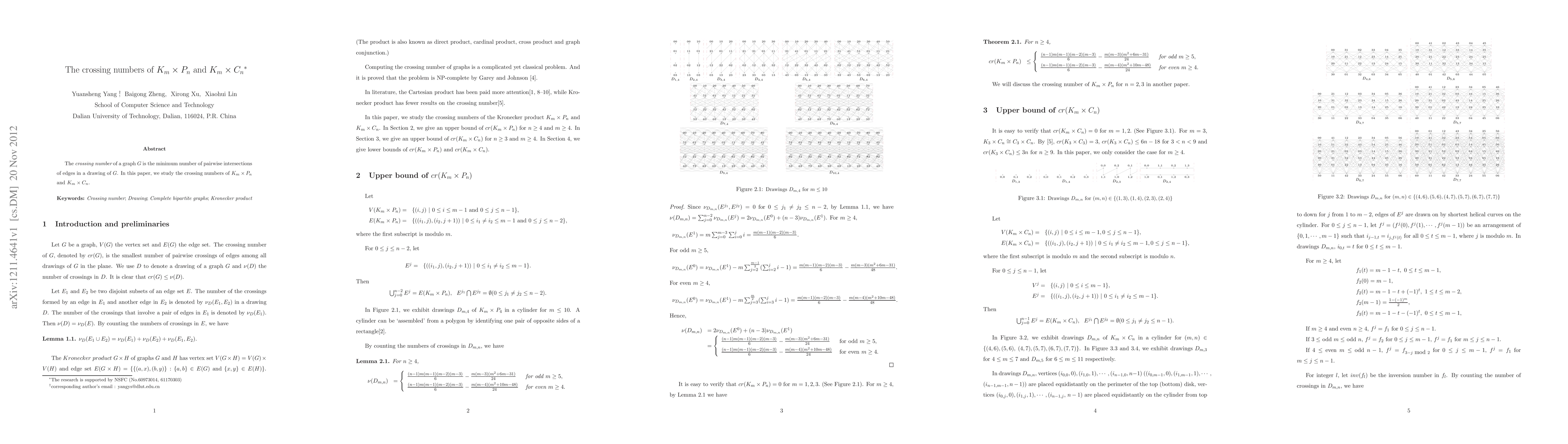 This paper investigates the crossing numbers of $K_{m} imes P_n$ and $K_{m} imes C_n$, finding that their minimum crossings occur at 2 and $rac{m(n-1)}{2}$ respectively.