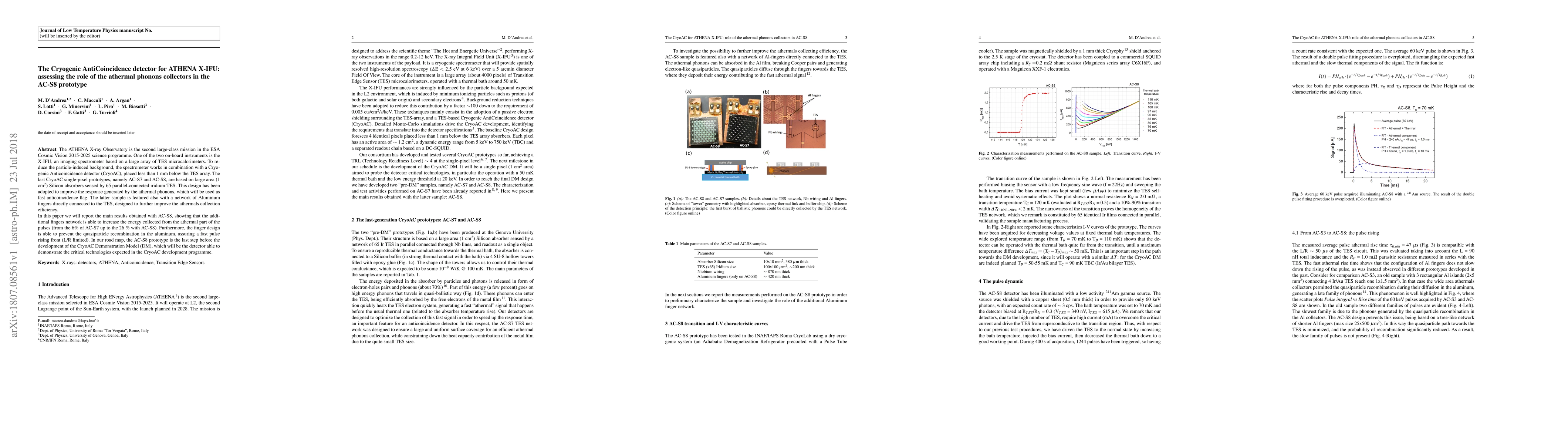This paper evaluates the AC-S8 prototype of the Cryogenic AntiCoincidence detector for ATHENA X-IFU, focusing on the role of athermal phonon collectors. The study finds that the additional network of aluminum fingers enhances athermal phonon collection efficiency from 6% to 26%, and prevents quasiparticle recombination, ensuring a fast pulse response.