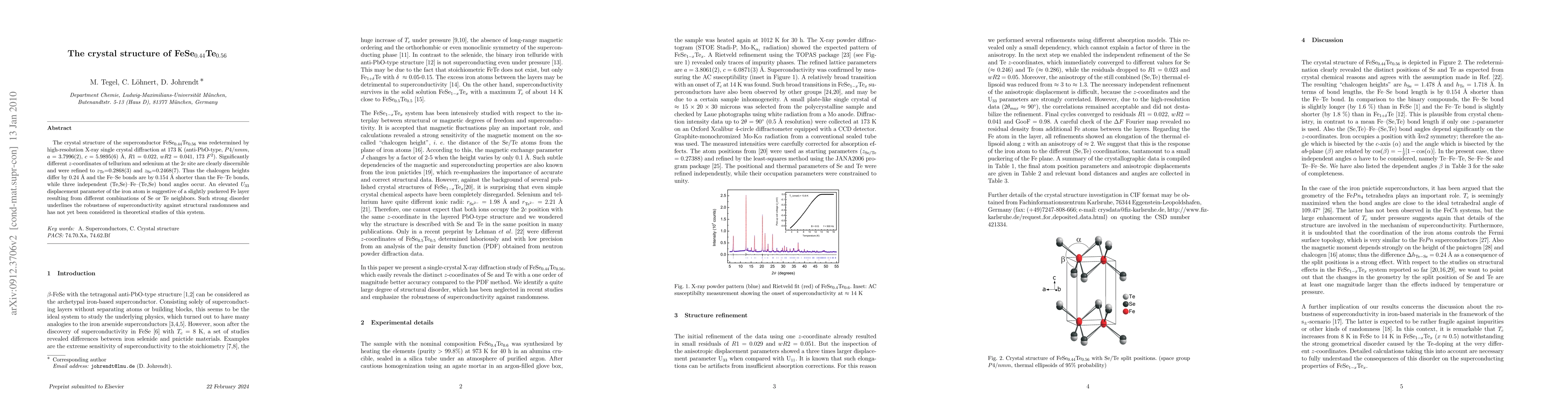 The crystal structure of the superconductor FeSe0.44Te0.56 was redetermined by high-resolution X-ray single crystal diffraction at 173 K (anti-PbO-type, P4/nmm, a=3.7996(2), c=5.9895(6) A, R1=0.022, wR2=0.041, 173 F^2). Significantly different z-coordinates of tellurium and selenium at the 2c site are clearly discernible and were refined to z_Te=0.2868(3) and z_Se=0.2468(7). Thus the chalcogen heights differ by 0.24 A and the Fe-Se bonds are by 0.154 A shorter than the Fe-Te bonds, while three independent (Te,Se)-Fe-(Te,Se) bond angles occur. An elevated U33 displacement parameter of the iron atom is suggestive of a slightly puckered Fe layer resulting from different combinations of Se or Te neighbors. Such strong disorder underlines the robustness of superconductivity against structural randomness and has not yet been considered in theoretical studies of this system.