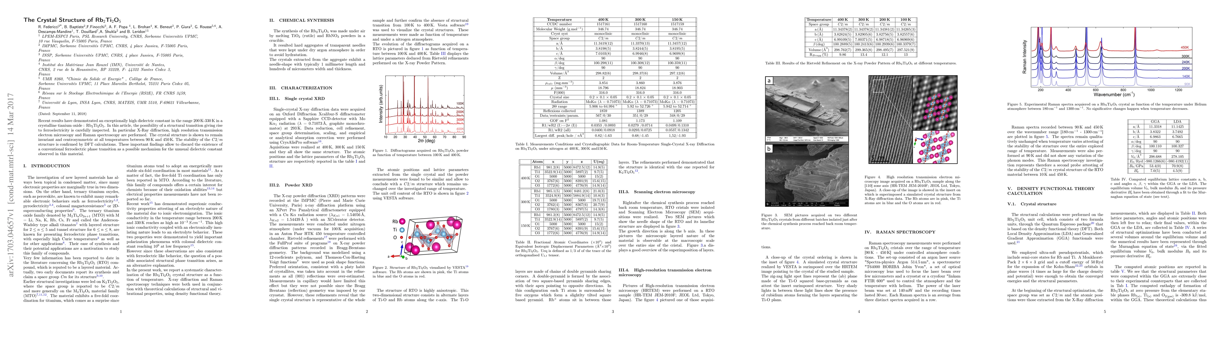 Recent results have demonstrated an exceptionally high dielectric constant in the range 200 K-330 K in a crystalline tianium oxide : Rb2Ti2O5. In this article, the possibility of a structural transition giving rise to ferroelectricity is carefully inspected. In particular X-Ray diffraction, high resolution transmission electron microscopy and Raman spectroscopy are performed. The crystal structure is shown to remain invariant and centrosymmetric at all temperatures between 90 K and 450 K. The stability of the C2/m structure is confirmed by DFT calculations. These important findings allow to discard the existence of a conventional ferroelectric phase transition as a possible mechanism for the unusual dielectric constant observed in this material.