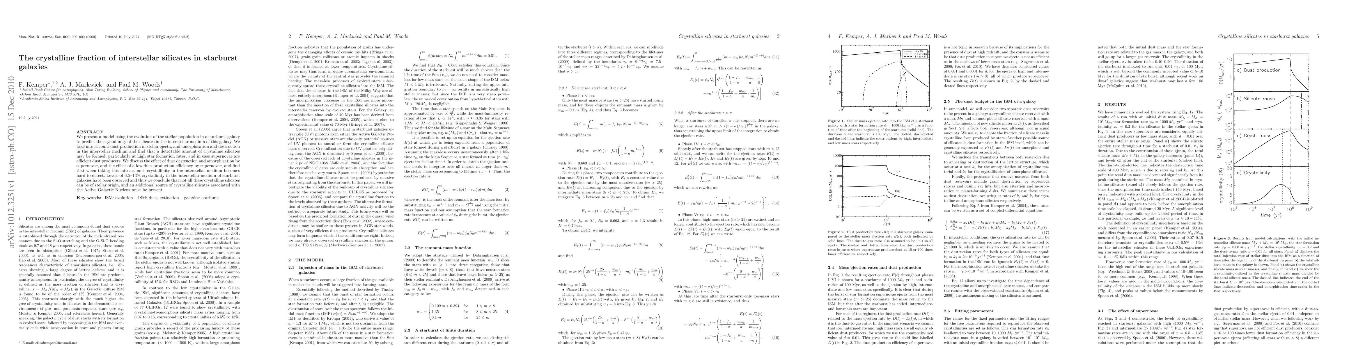 This paper models the evolution of starburst galaxies to predict silicate crystallinity in their interstellar medium, finding that high star formation rates and efficient supernovae can produce detectable crystalline silicates. However, considering dust destruction and low supernova efficiency, the presence of an additional source, likely from the Active Galactic Nucleus, is inferred to explain observed crystallinity levels.