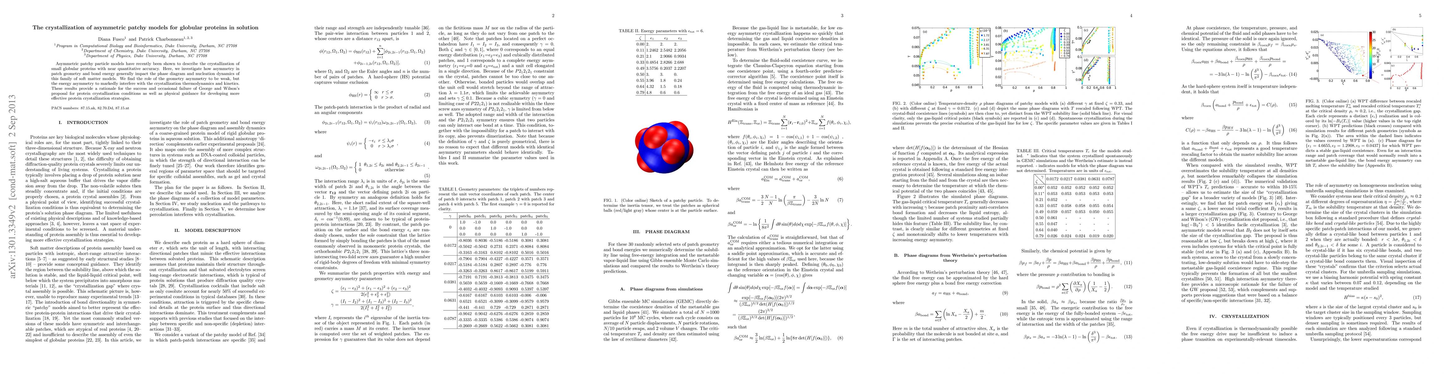 This paper explores how asymmetry in patch geometry and bond energy affects the crystallization of globular proteins, finding that while geometric asymmetry has a minor effect, energy asymmetry significantly impacts crystallization thermodynamics and kinetics, offering insights into protein crystallization strategies.