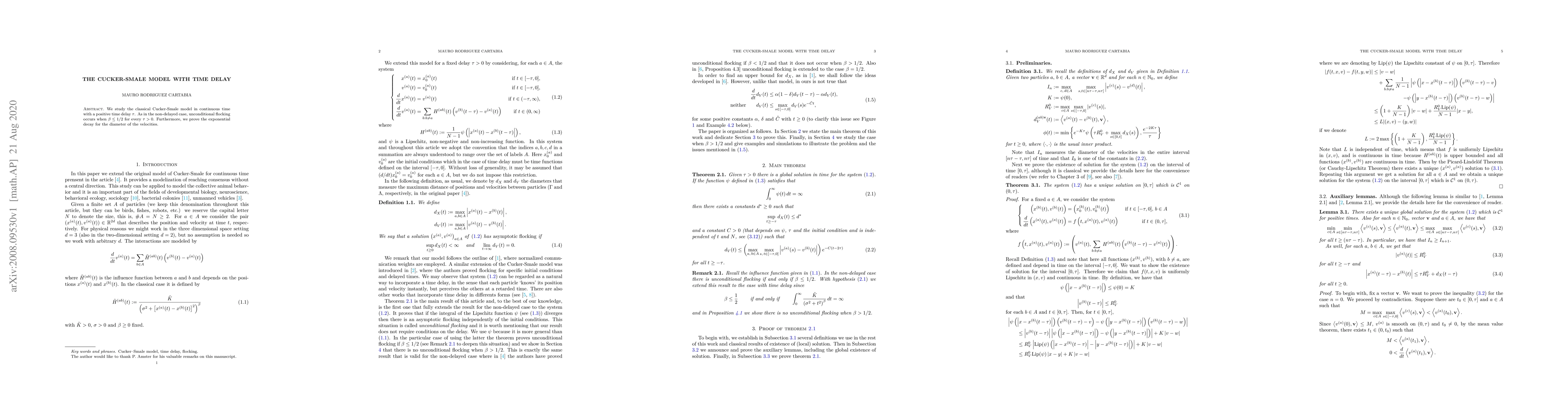 Summary: This paper investigates the Cucker-Smale model with a positive time delay, demonstrating that flocking behavior persists when $\beta \leq 1/2$ regardless of $\tau$, and proves exponential decay for the velocity diameter.