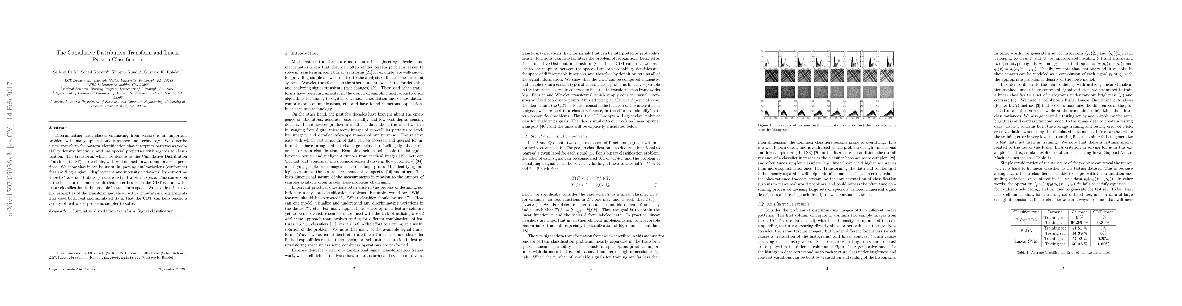 A new transform called the Cumulative Distribution Transform (CDT) is proposed for pattern identification, allowing for linear classification in transform space and simplifying real-world problems with computational experiments.