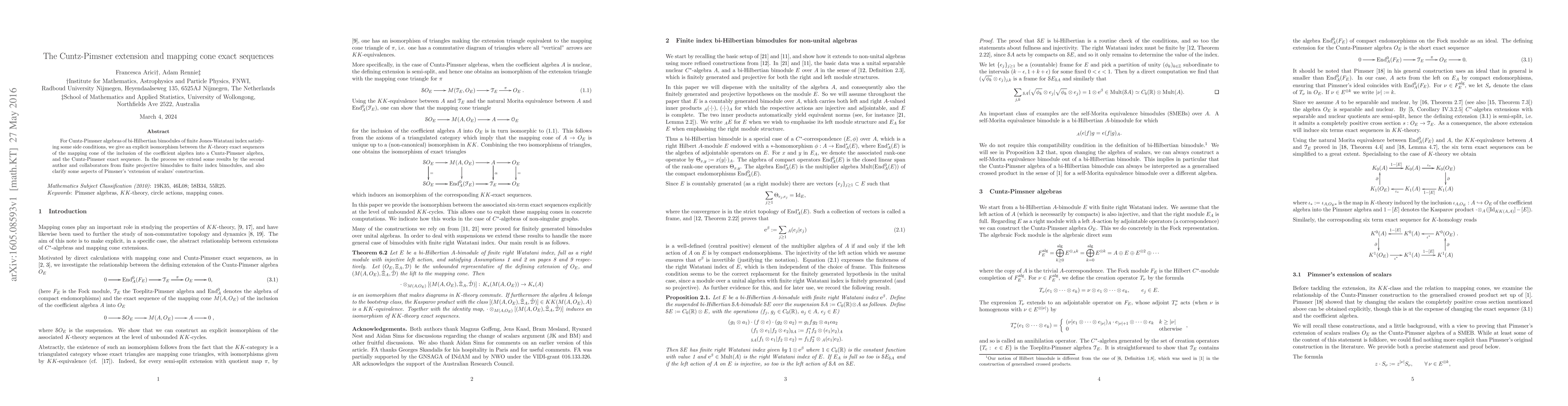 This paper establishes an explicit isomorphism between the $K$-theory exact sequences of the mapping cone of a finite index bimodule's inclusion into its Cuntz-Pimsner algebra and the Cuntz-Pimsner exact sequence, extending previous results to finite index cases. It also clarifies aspects of Pimsner's scalar extension construction.