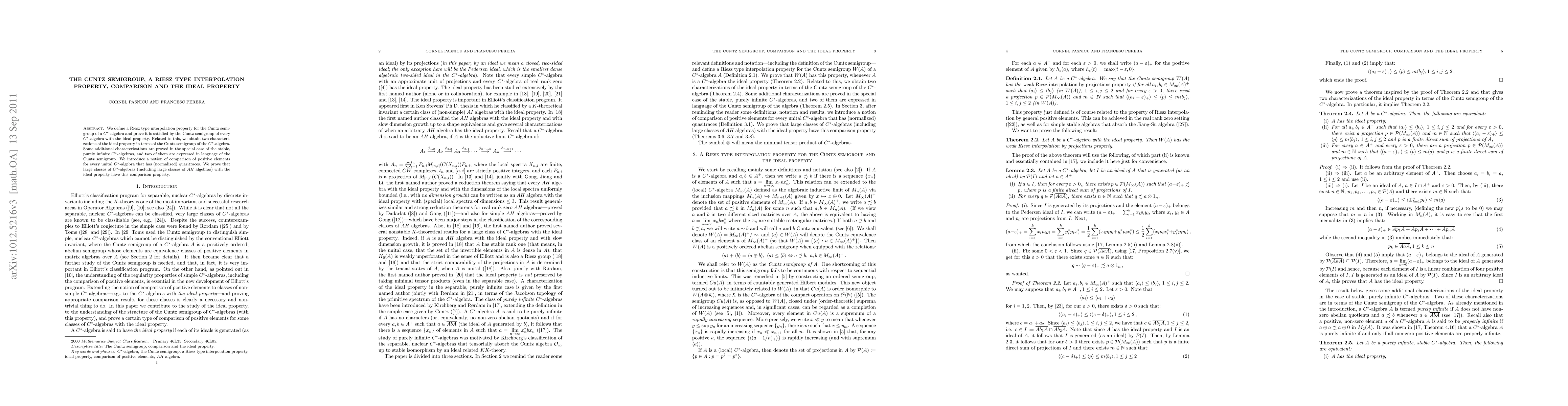 We define a Riesz type interpolation property for the Cuntz semigroup of a $C^*$-algebra and prove it is satisfied by the Cuntz semigroup of every $C^*$-algebra with the ideal property. Related to this, we obtain two characterizations of the ideal property in terms of the Cuntz semigroup of the $C^*$-algebra. Some additional characterizations are proved in the special case of the stable, purely infinite $C^*$-algebras, and two of them are expressed in language of the Cuntz semigroup. We introduce a notion of comparison of positive elements for every unital $C^*$-algebra that has (normalized) quasitraces. We prove that large classes of $C^*$-algebras (including large classes of $AH$ algebras) with the ideal property have this comparison property.