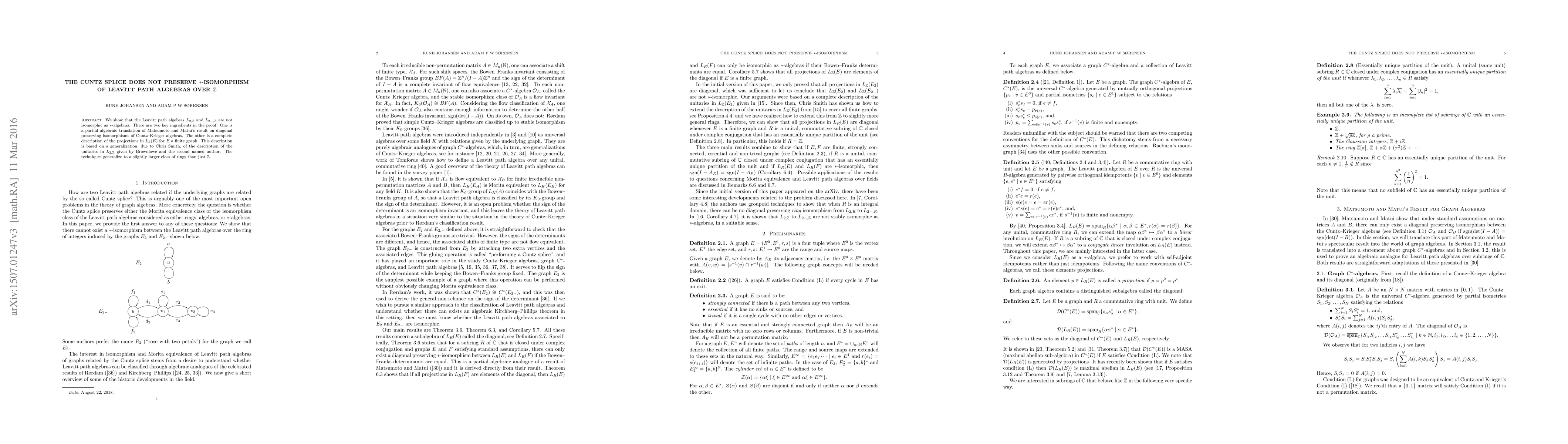We show that the Leavitt path algebras $L_{2,\mathbb{Z}}$ and $L_{2-,\mathbb{Z}}$ are not isomorphic as $*$-algebras. There are two key ingredients in the proof. One is a partial algebraic translation of Matsumoto and Matui's result on diagonal preserving isomorphisms of Cuntz--Krieger algebras. The other is a complete description of the projections in $L_{\mathbb{Z}}(E)$ for $E$ a finite graph. This description is based on a generalization, due to Chris Smith, of the description of the unitaries in $L_{2,\mathbb{Z}}$ given by Brownlowe and the second named author. The techniques generalize to a slightly larger class of rings than just $\mathbb{Z}$.