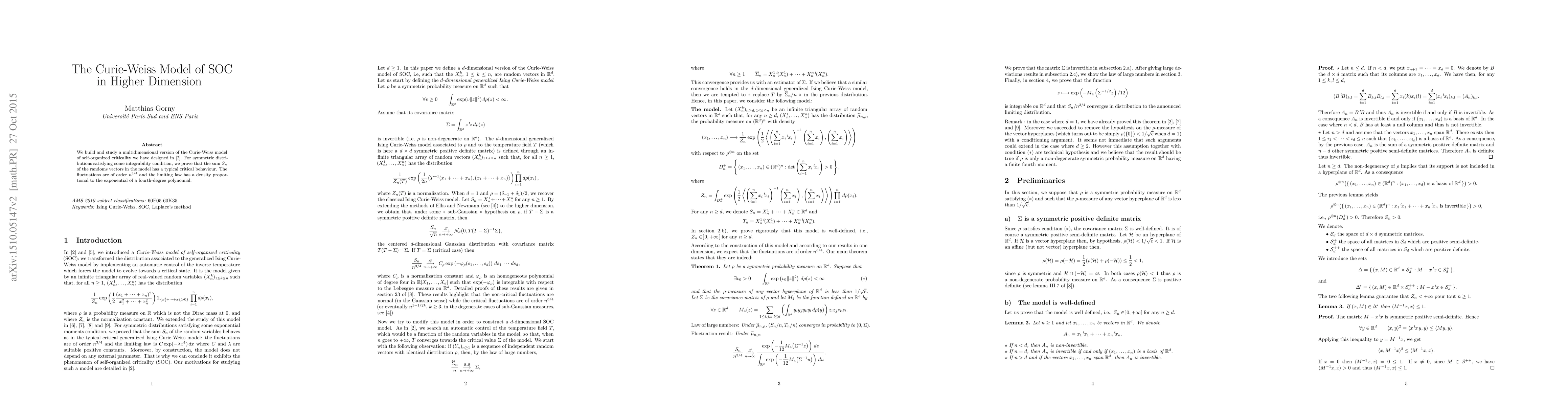 This paper develops a higher-dimensional version of the Curie-Weiss model for self-organized criticality, proving that the sum of random vectors exhibits typical critical behavior with fluctuations scaling as $n^{3/4}$ and the limiting law proportional to the exponential of a fourth-degree polynomial.